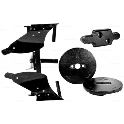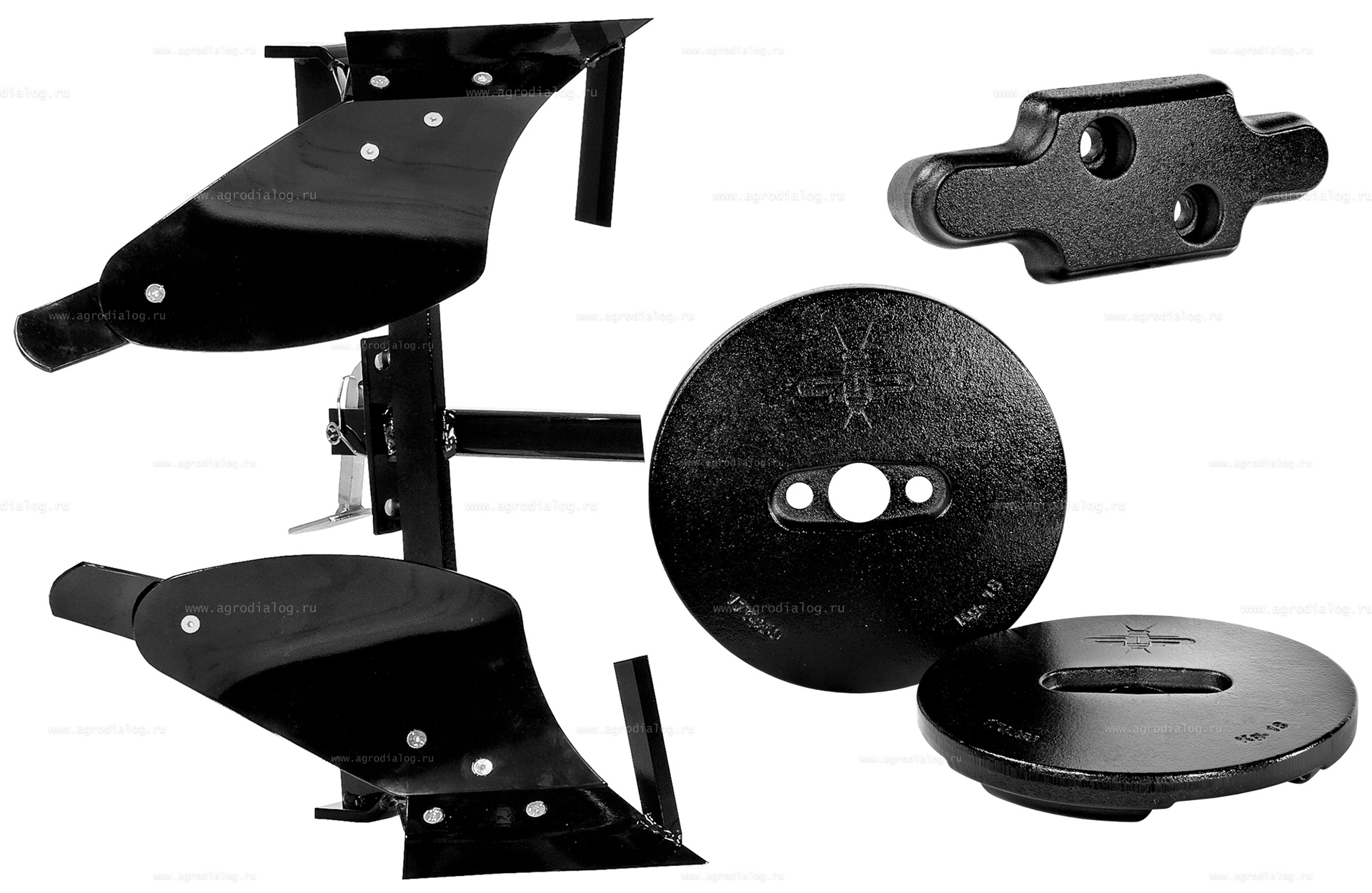 Комплект для вспашки Grillo 952011 представляет из себя два обычных скрепленных плуга. Качество работы плуга при вспашке достигается за счет переноса верхнего слоя земли вниз. В отличии от обычного плуга оборотный плуг экономит время и горючее за счет ликвидации холостых проходов мотоблока. Вспахивание с помощью оборотного плуга уменьшает количество сорняков, делает почву более мягкой и податливой, облегчает дальнейший посев. Угол поворота - 180°. В комплект входит: оборотный плуг, сцепка, грузы на колеса 5.00-12” - 20 кг., груз на бампер - 11 кг. Вес комплекта - 63 кг. Для работы необходимо приобрести проставки 9A3211 (для установки колес 902512 на мотоблоки Grillo G 55 c двигателями Robin-Subaru и Lombardini) и колеса 902512 (5.00-12”).