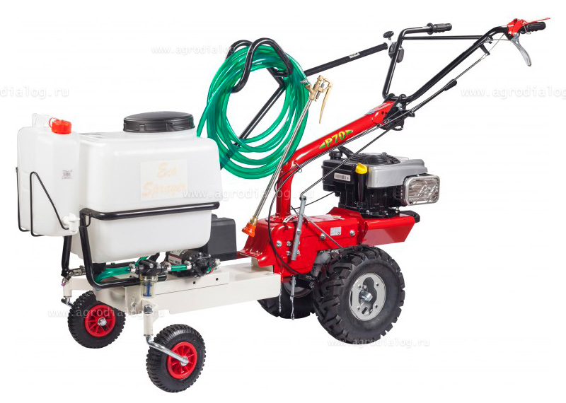 Для обработки больших территорий, для которых носимого объема в 20 литров мало, применяют насадку-опрыскиватель 905258500 для Eurosystems P70. Два аккумулятора гарантируют до 4 часов непрерывной работы опрыскивателя. Напряжение - 12 Вольт. Емкость аккумулятора - 5 Ah (x2=10Ah). Время зарядки - 10 часов. Максимальное рабочее давление - 4,1 бар. Насос автоматически отключается на уровне 4,1 бар и включается снова, когда он опускается ниже 3 бар. Максимальная производительность насоса со шлангом и распылительной штангой - 7,7 л/мин. Длина шланга - 9 метров. Специальная форсунка, расположенная в передней части опрыскивателя, поможет вам быстро обработать значительную территорию и ускорит процесс уничтожения вредителей и защиты растений от них. Форсунка имеет регулировку с вращением вниз или вверх. В комплект поставки входят две форсунки (с зеленым соплом (расход 0,5 л/мин) и фиолетовым соплом (расход 1 л/мин). Опрыскиватель может работать со всеми пестицидами, применяемыми в сельском хозяйстве с жидкими минеральными удобрениями, а также с любыми рабочими жидкостями в виде водных растворов, эмульсий и суспензий. Категорически запрещается использовать химические растворы на основе ацетона, бензина, керосина и других растворителей. 50 литровая рабочая емкость изготовлена из высококачественного полипропилена повышенной прочности. Насадка-опрыскиватель Eurosystems 905258500 оснащена 10-литровым бачком для мытья рук. Перед началом работы убедитесь, что бачок заполнен чистой водой. Размеры насадки (ДxШxВ) - 148x71x111 см. Вес насадки - 40 кг.