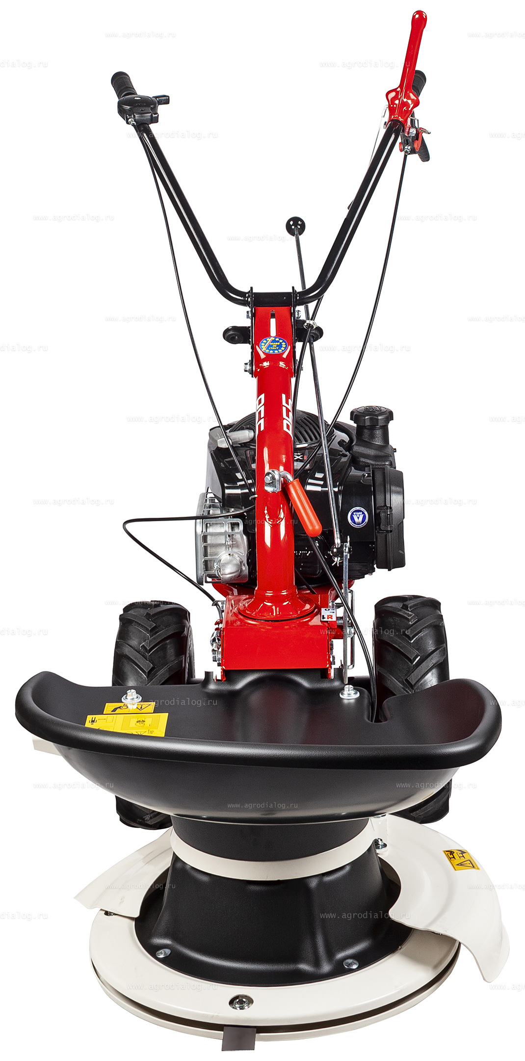 Насадка роторная косилка 907280000 для Eurosystems P55. Применяется для скашивания обычных и высокоурожайных, грубостебельных трав на различных участках фермерских хозяйств, садоводческих участков, полей, обочин дорог. Роторная косилка пользуется большим спросом у покупателей благодаря высокой производительности, маневренности, малому весу, простоте в эксплуатации и обслуживании. Роторная косилка Eyrosystems имеет ширину захвата 52 см. и безопаснее по сравнению с фронтальными стригущими косилками, при этом скошенную траву укладывает в ряд, что не требует ее дальнейшего грабления. Защитный экран не входит в стандартный комплект поставки и заказывается отдельно.
