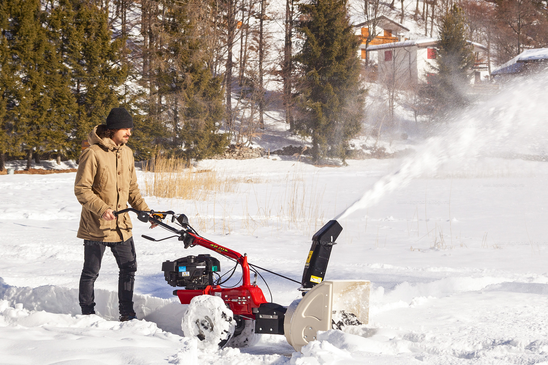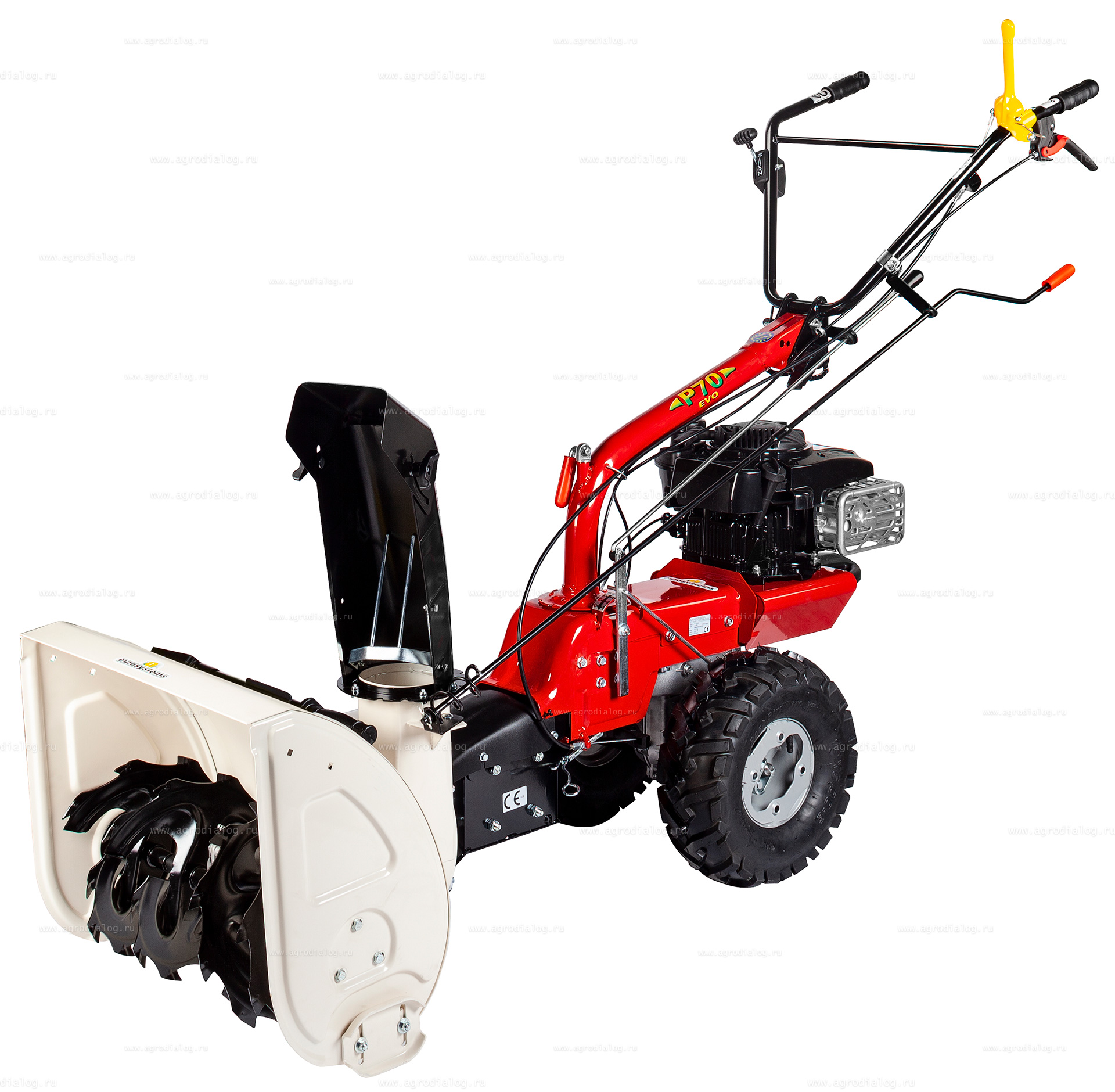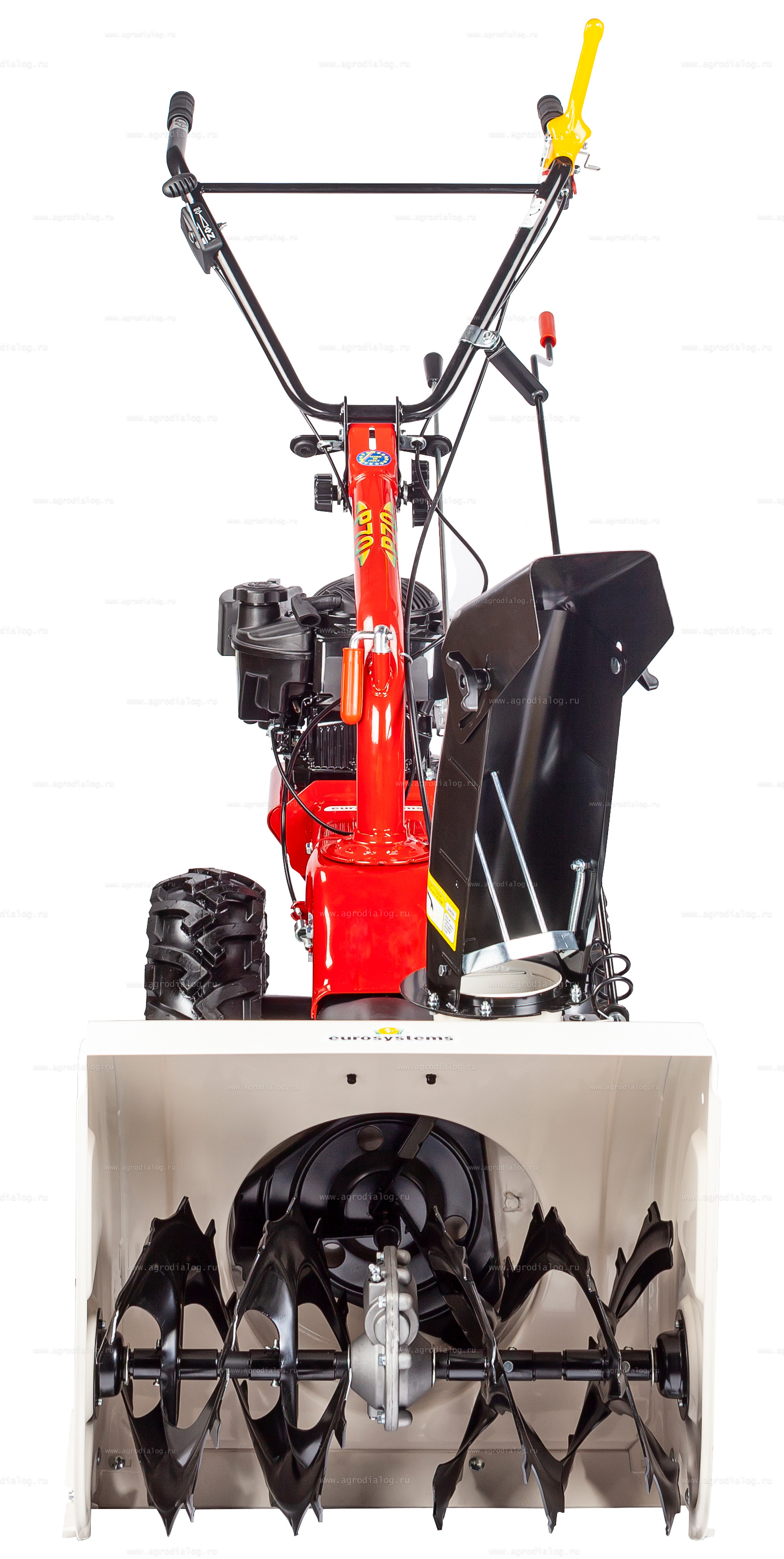 Насадка снегоуборщик 905254000 для Eurosystems P70. Предназначен для уборки снежного покрова на дорогах и тротуарах. Он оснащен мощным зазубренным шнеком, собирающим снег, и специальной крыльчаткой для его выбрасывания. Регулировка направления выброса регулируется вращением рукоятки, вынесенной к оператору. Поворот желоба выброса - 190°. Регулировка дальности выброса - ручная, фиксируется с помощью барашка на дефлекторе выброса. Выброс снега осуществляется на расстояние до 12 метров. Регулируемые направляющие полозья устанавливают высоту скребка над землей во избежание всевозможных повреждений. Ширина захвата 55 см. Высота захвата 56 см. Вес 43 кг.
