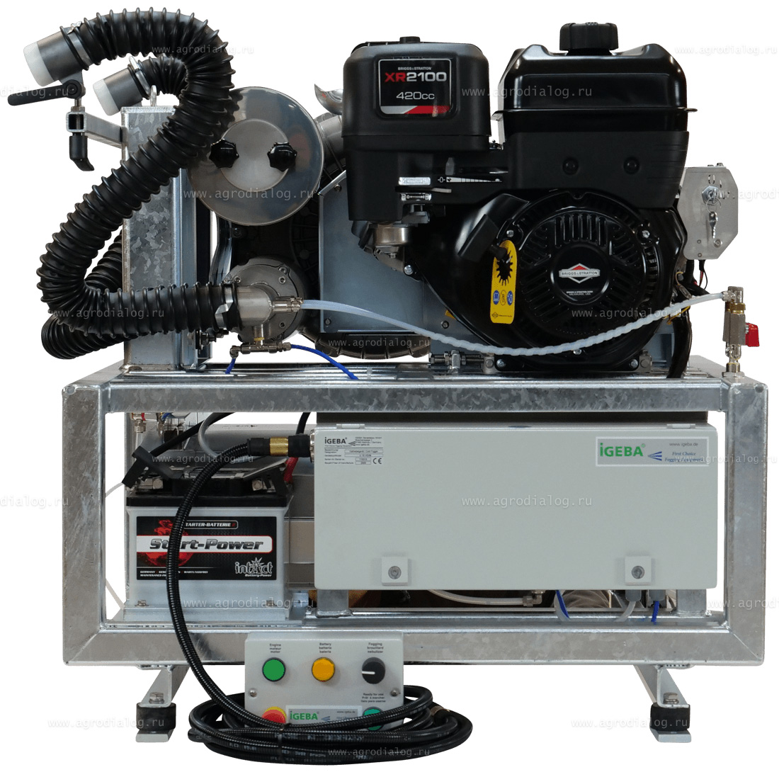 - Генератор холодного тумана IGEBA U 15 HD-M оснащен одноцилиндровым двигателем Briggs&Stratton XR2100 Series.