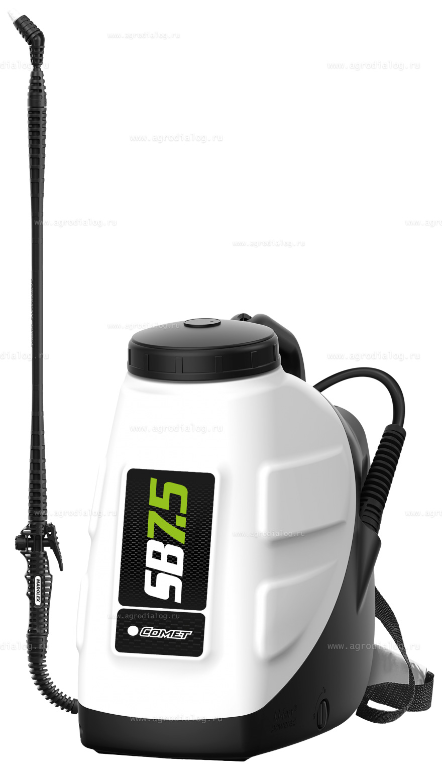 - Аккумуляторный опрыскиватель Comet SB7.5 оборудован микропроцессором, который отвечает за безопасность работы и эффективное использование аккумуляторной батареи, экономя энергию, благодаря чему Вы можете работать дольше.