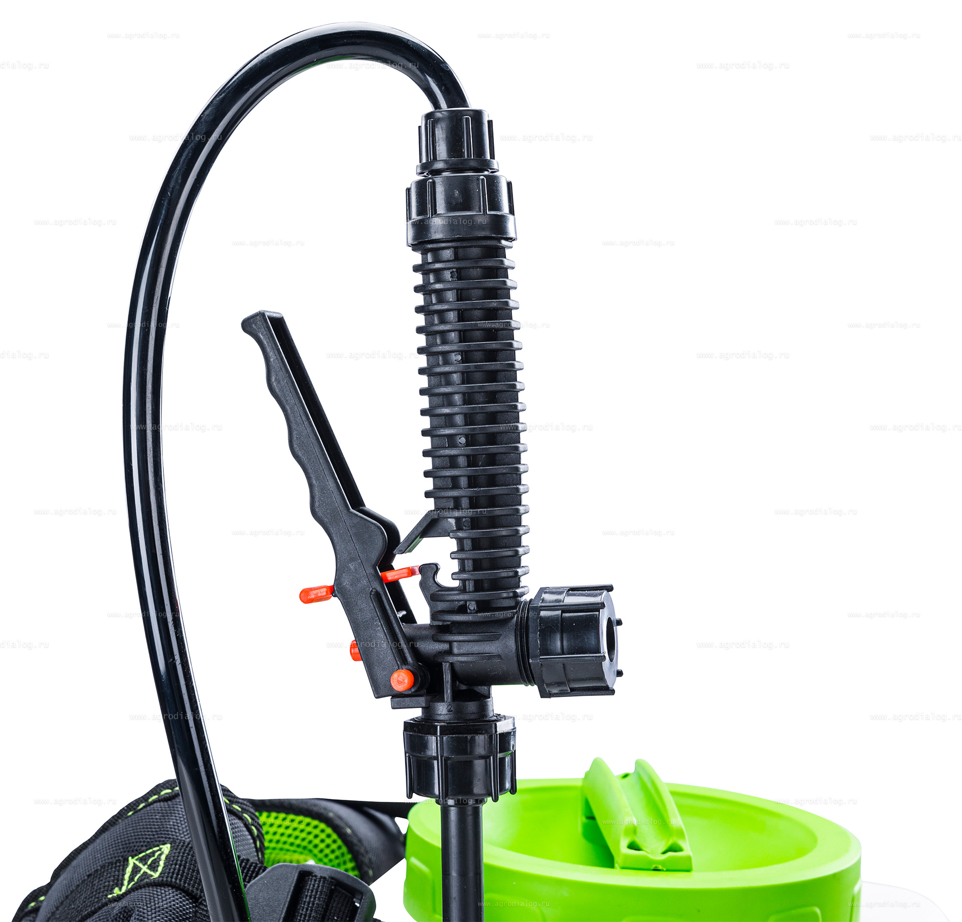 - Удобная рукоятка, встроенная в крышку бака, позволяет оператору переносить опрыскиватель без особых усилий.