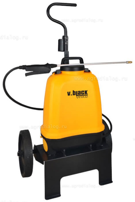 - Аккумуляторный опрыскиватель на колесах Volpi V.Black Vita 12 CAR удобно использовать при работе на больших расстояниях и площадях. Опрыскиватель можно носить на спине или перемещать на тележке, что по достоинству оценят особенно женщины и пожилые люди.