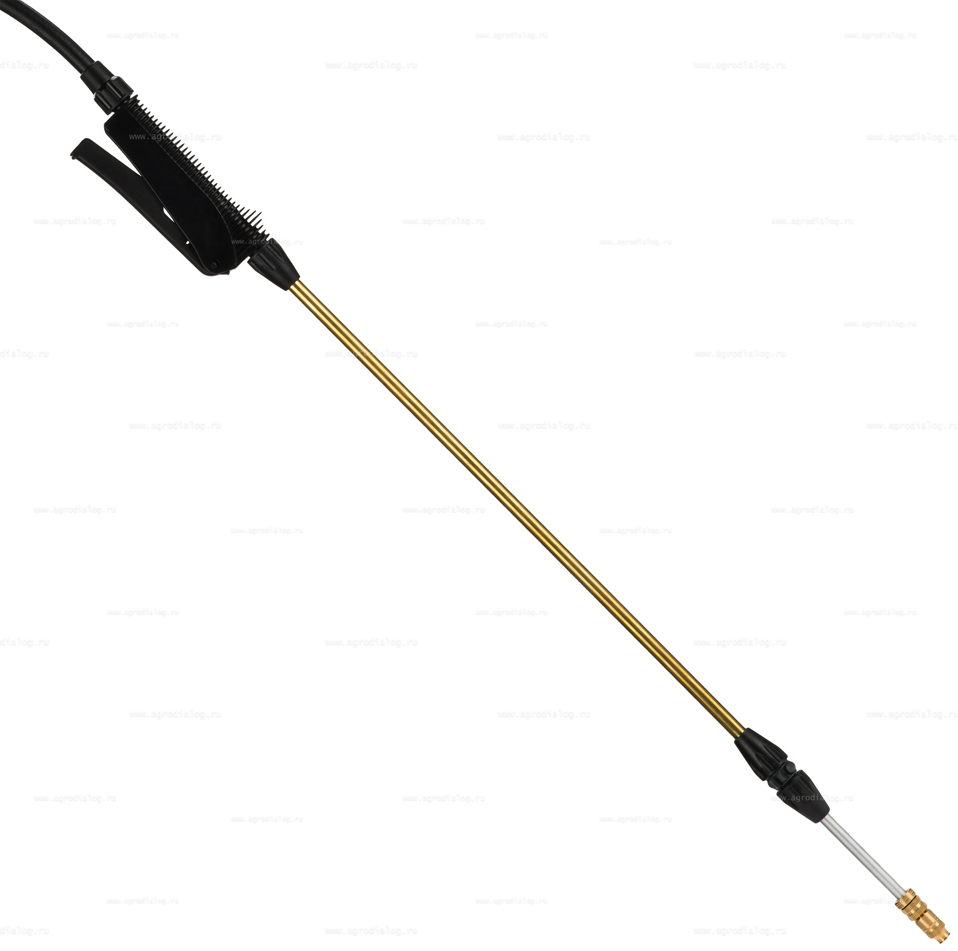 - Алюминиево-латунная распылительная телескопическая трубка позволяет оператору производить обработку труднодоступных мест и обрабатывать небольшие плодовые деревья.