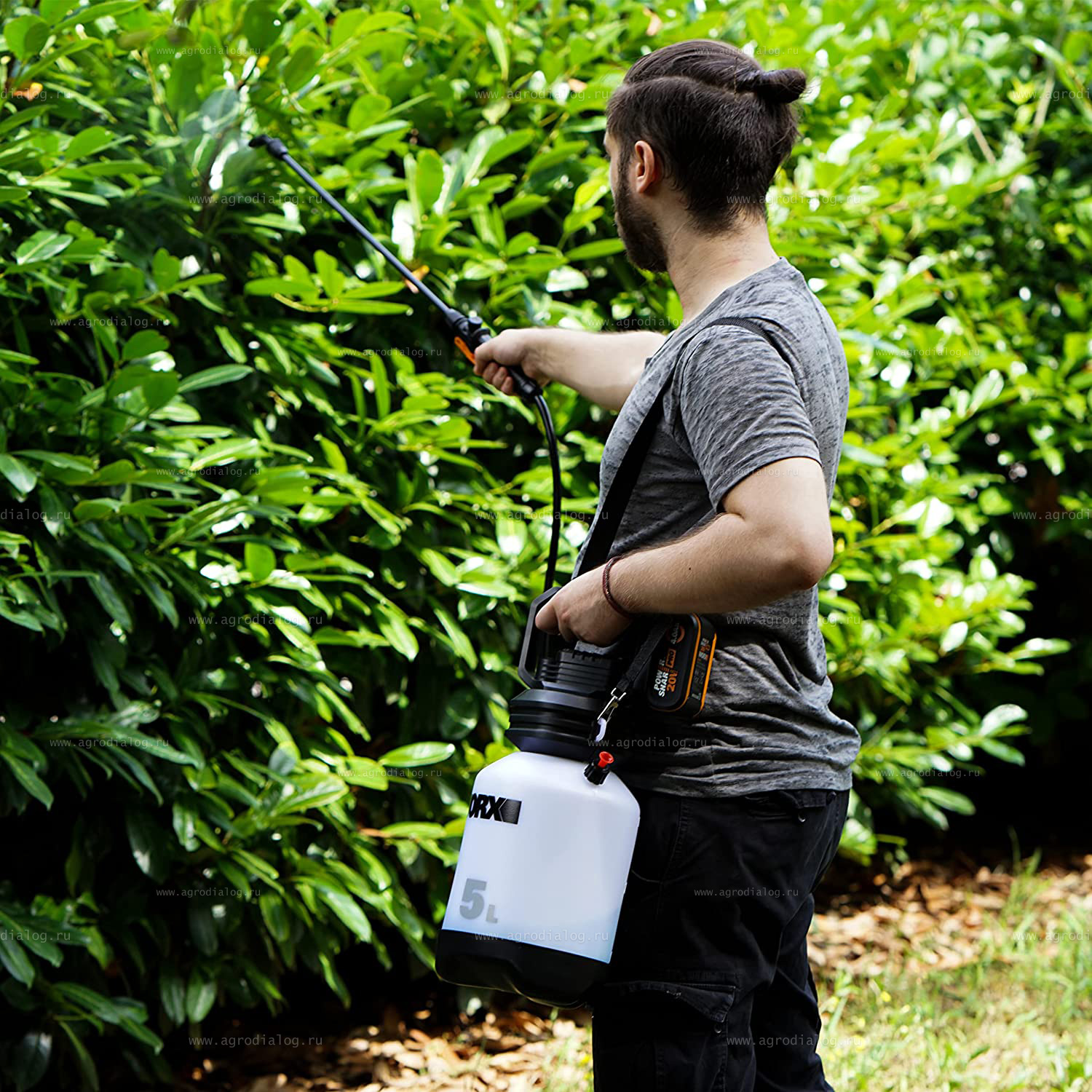 Производить обработку растений от болезней и вредителей вручную дело сложное и утомительное. Максимально упростить данный процесс поможет аккумуляторный опрыскиватель WORX WG829E.9.