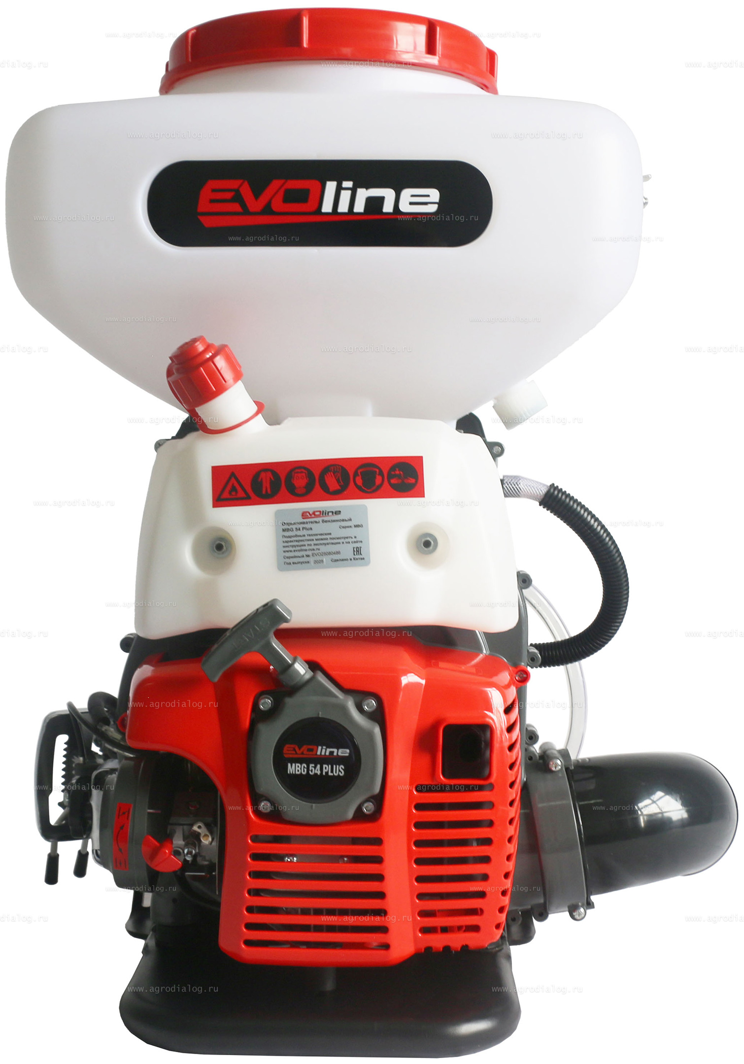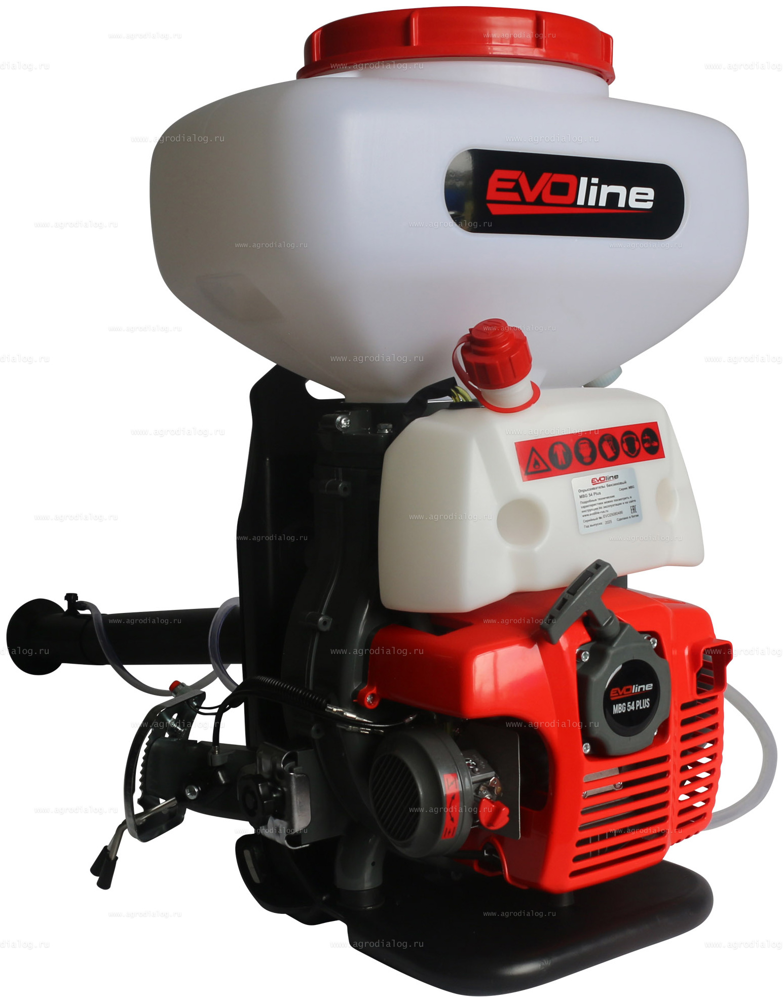 - Бензиновый опрыскиватель EVOline MBG 54 Plus имеет высокие технические характеристики в горизонтальном и вертикальном распылении.