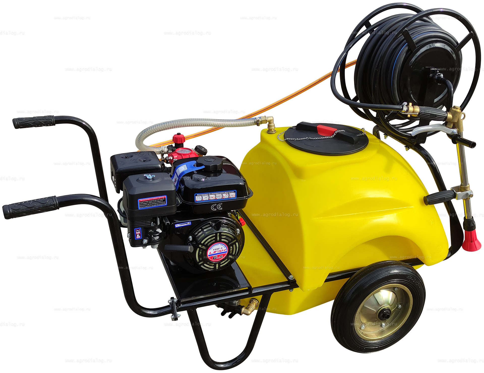 - Бензиновый опрыскиватель на колесах Annovi Reverberi 120 Lifan VR20 оснащен 50 метровым шлангом высокого давления на катушке.
