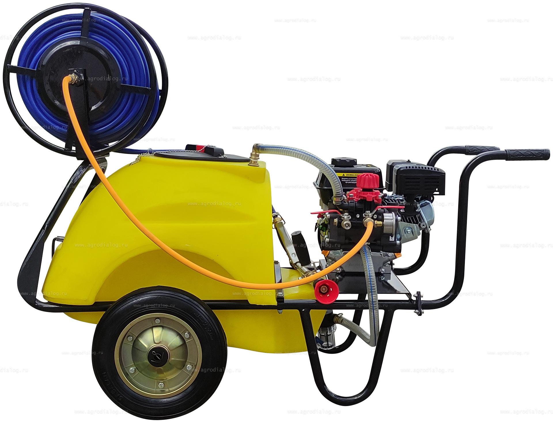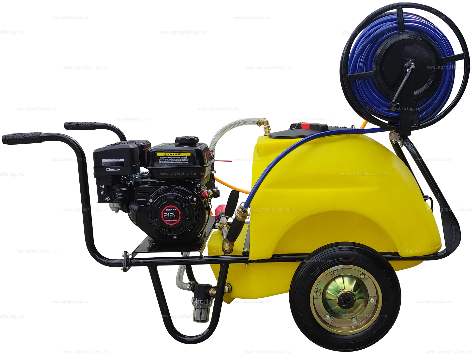 - Бензиновый опрыскиватель на колесах Annovi Reverberi 120 Loncin GR40 оснащен 50 метровым шлангом высокого давления на катушке.