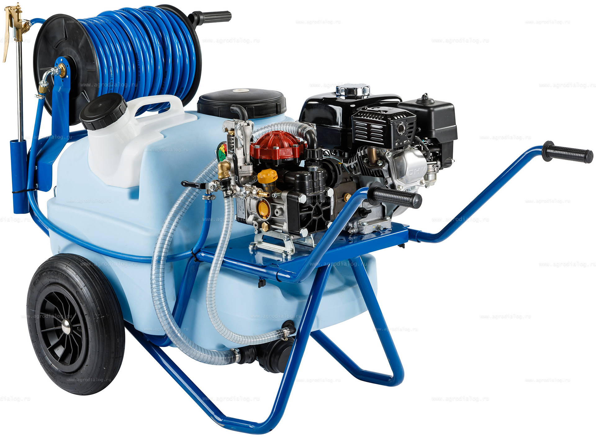 - Бензиновый опрыскиватель на колесах Annovi Reverberi 130 Honda GX 160 оснащен 10 метровым шлангом высокого давления.