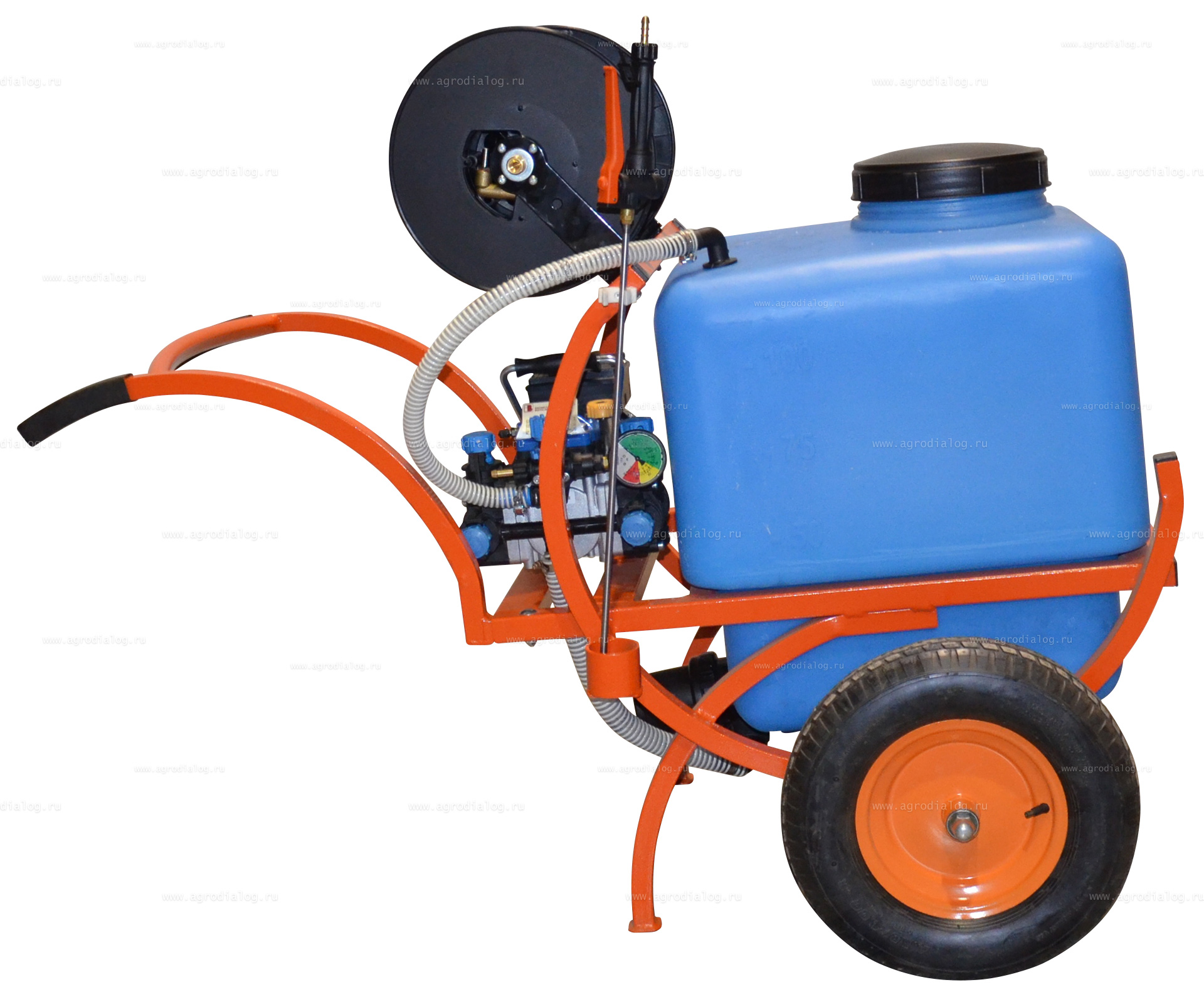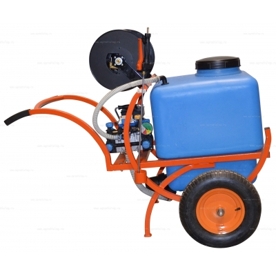 - Бензиновый опрыскиватель на колесах Bertolini 120 оснащен 50 метровым шлангом высокого давления на катушке.