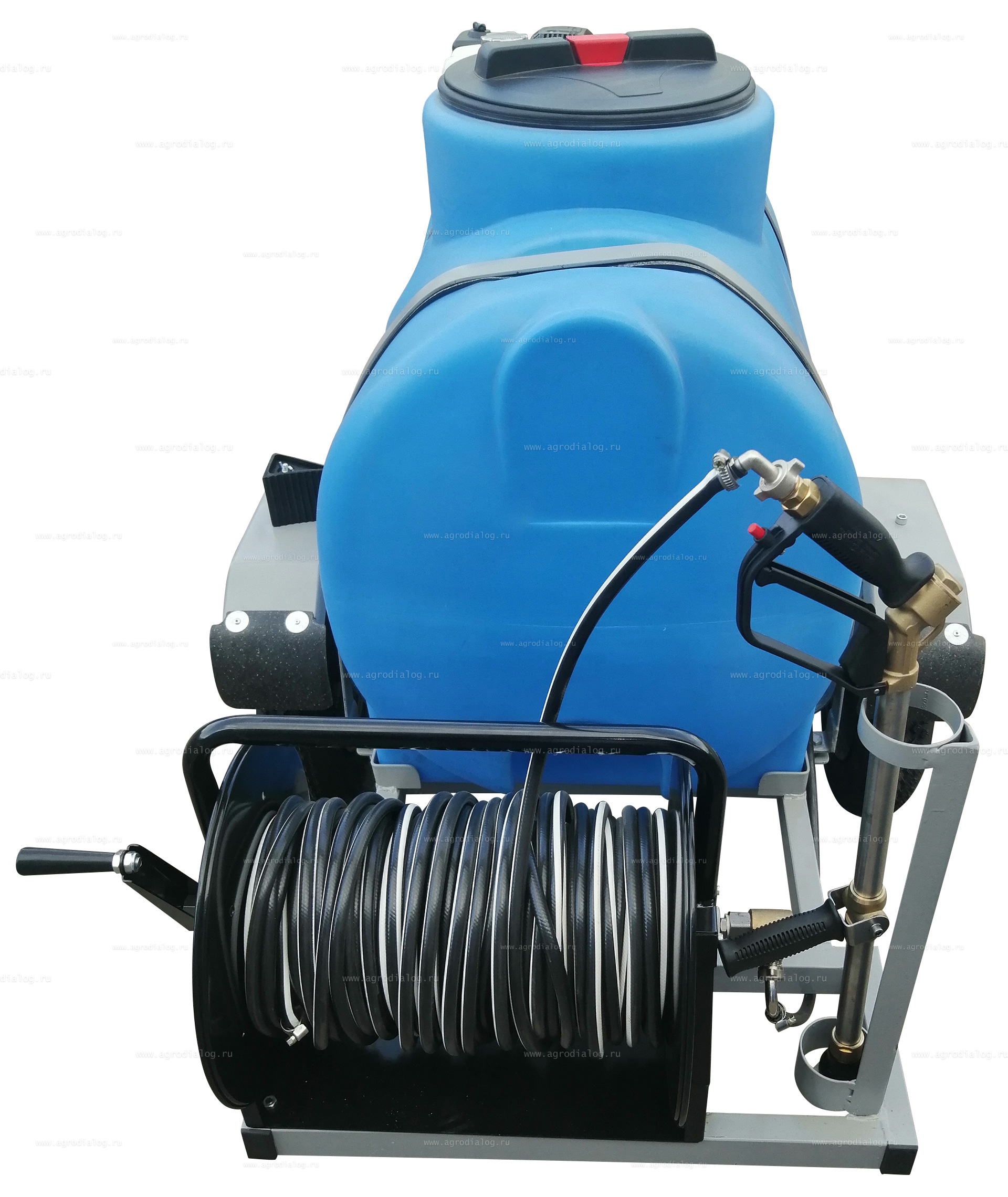 - Опрыскиватель оснащен 50 метровым шлангом высокого давления на катушке.