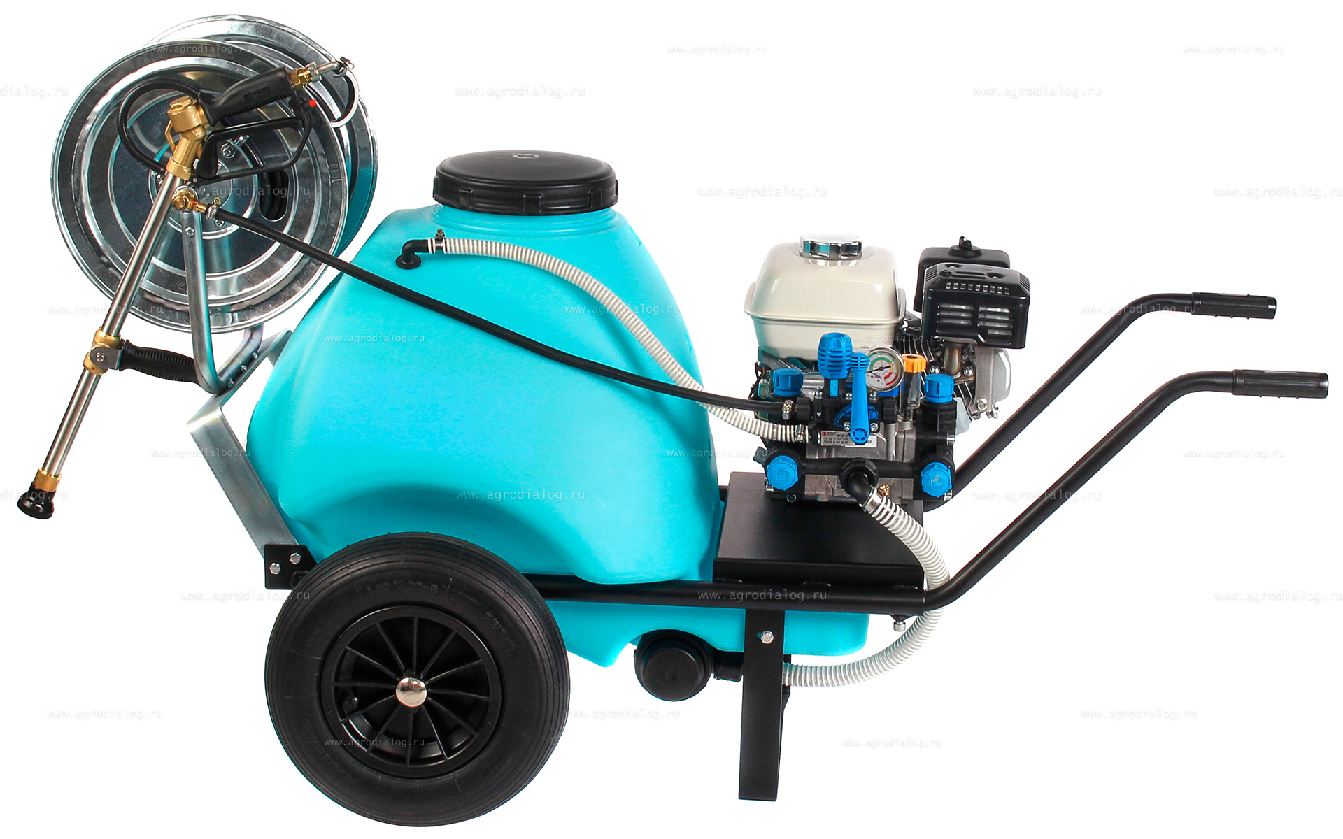 - Бензиновый опрыскиватель на колесах Comet 120 ECO B&S оснащен 50 метровым шлангом высокого давления на катушке.