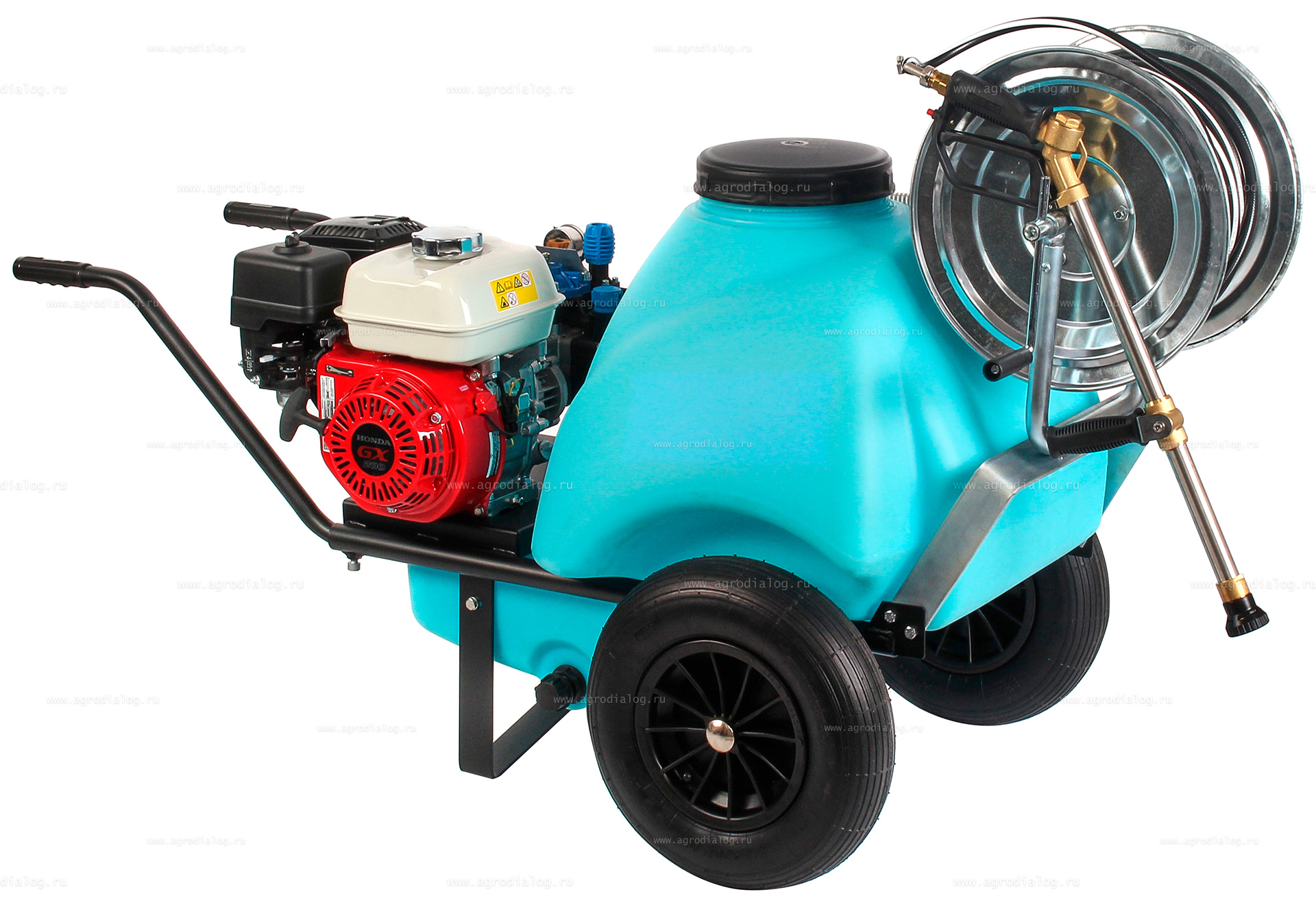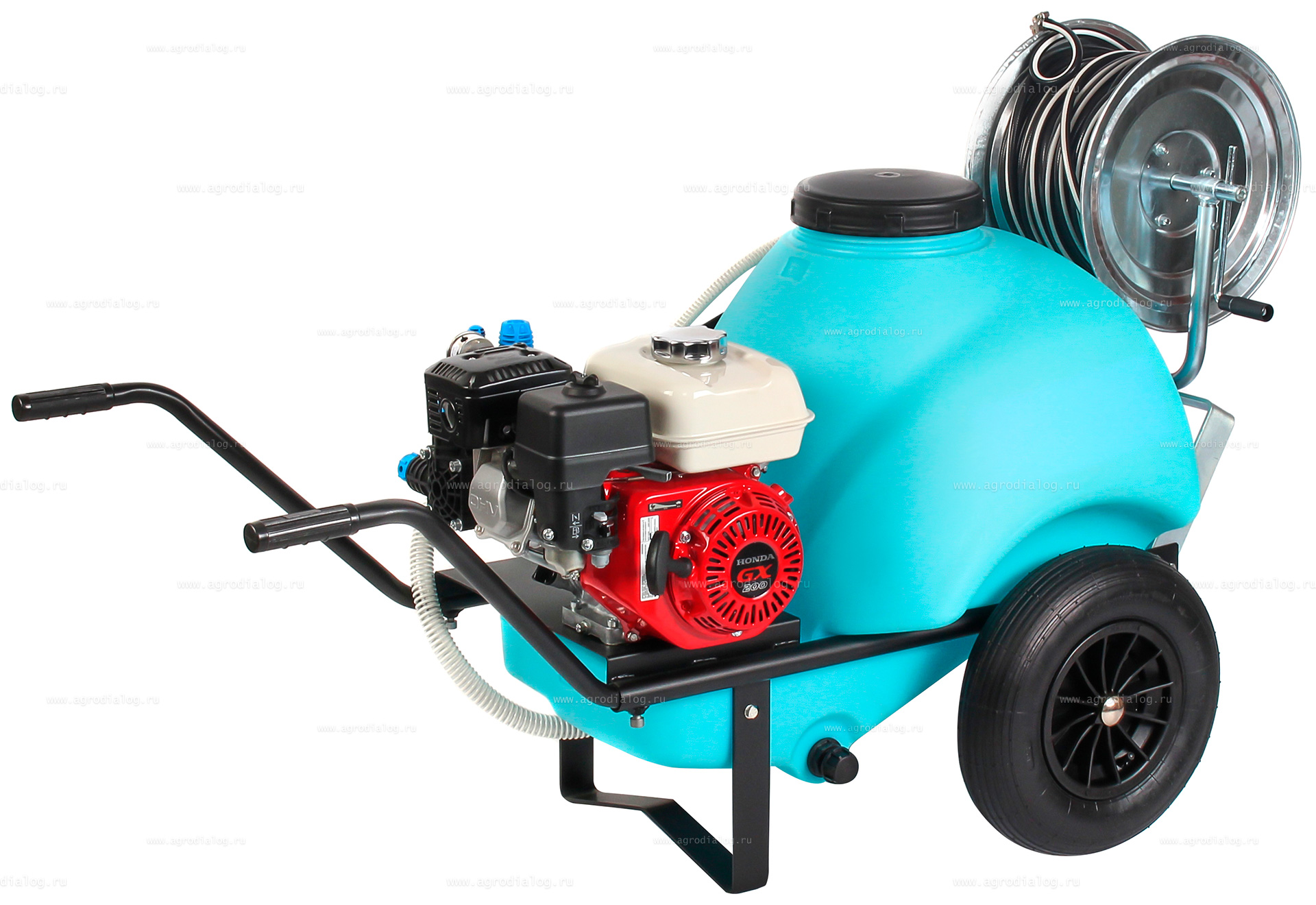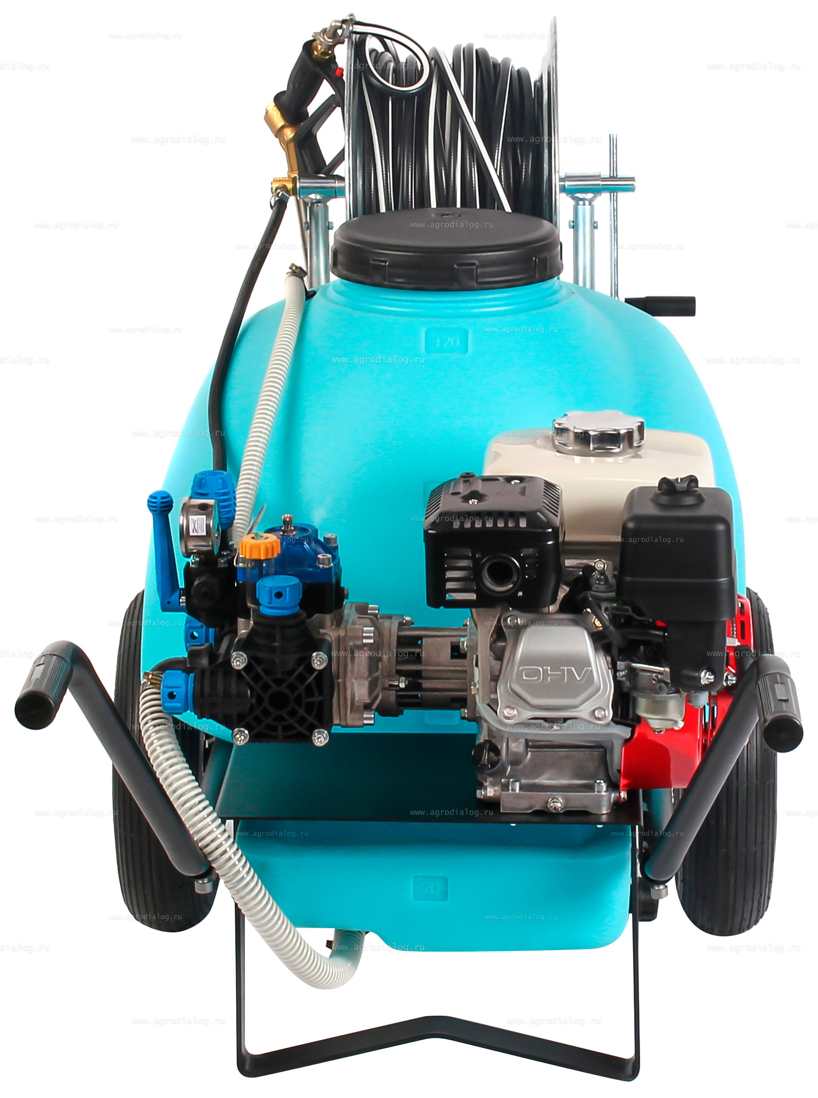 - Бензиновый опрыскиватель на колесах Comet 120 ECO Honda оснащен 50 метровым шлангом высокого давления на катушке.