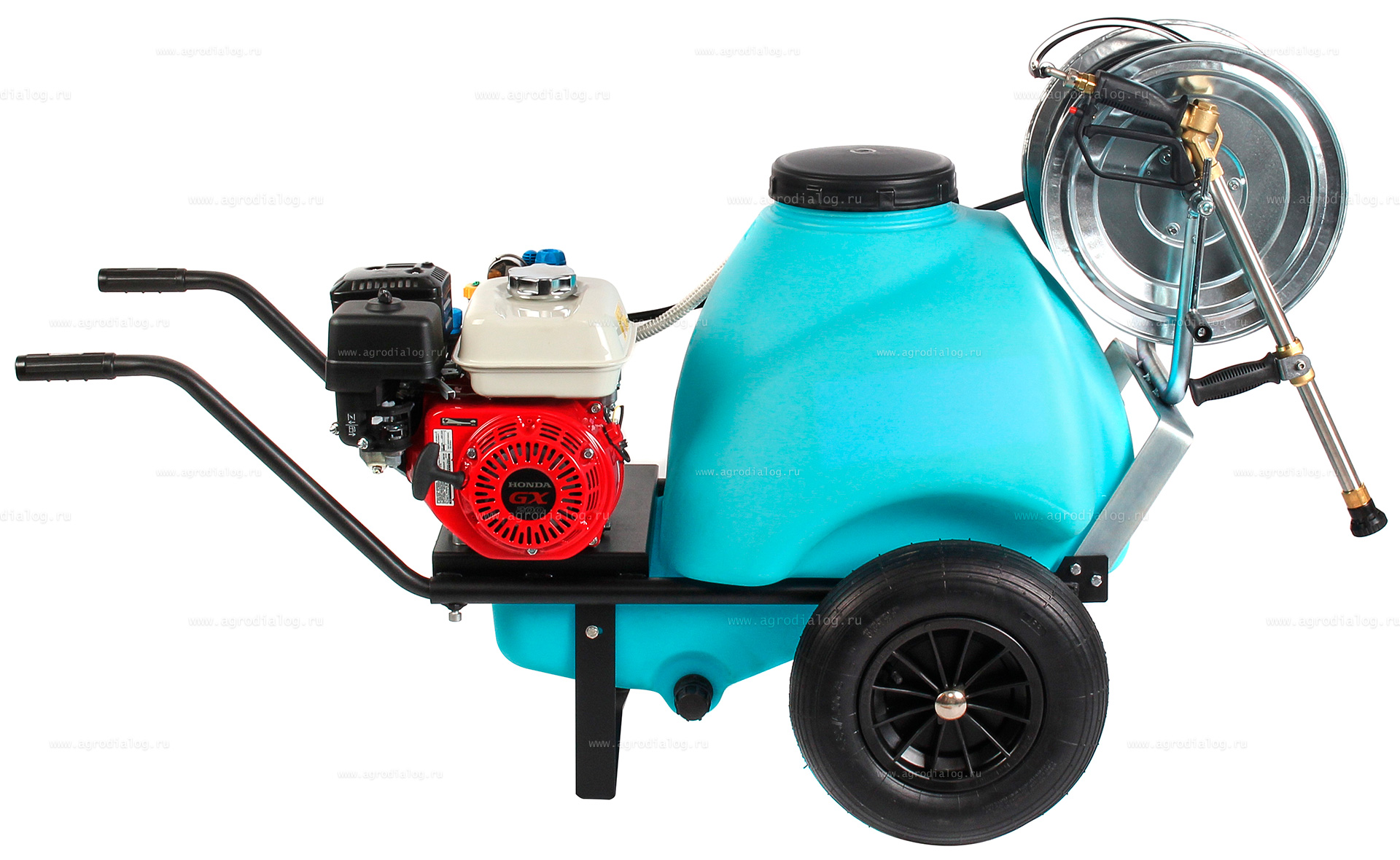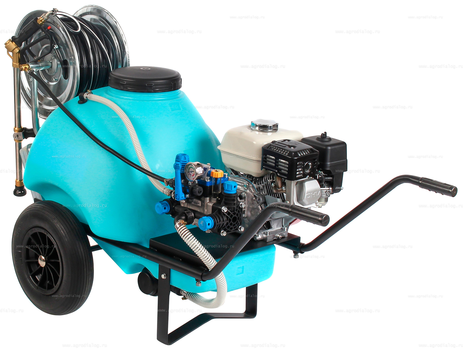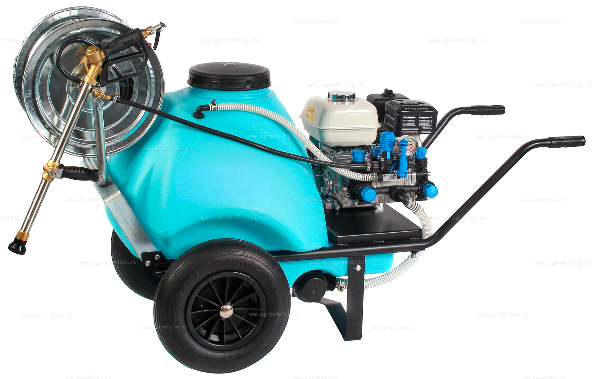 - Бензиновый опрыскиватель на колесах Comet 120 ECO Honda оснащен 50 метровым шлангом высокого давления на катушке.