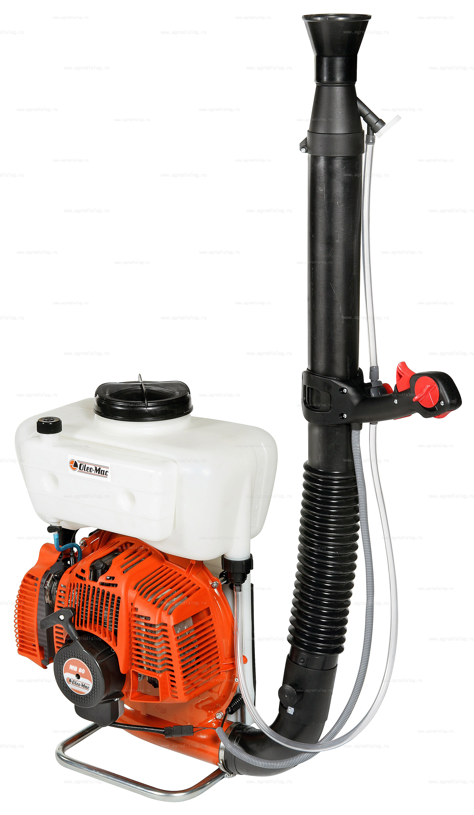 - Бензиновый опрыскиватель Oleo-Mac MB80 обладает высокими техническими характеристиками в горизонтальном и вертикальном распылении.
