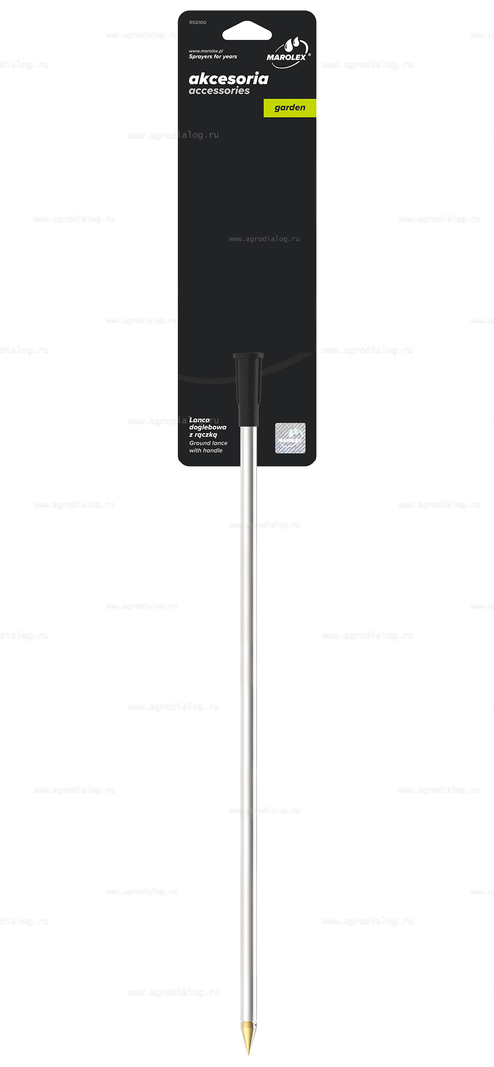 Грунтовая штанга Marolex RSG100 предназначена для безопасного введения препаратов в землю при борьбе с почвенными вредителями (личинка майского жука, медведка, садовый хрущик), а также для внесения удобрений при корневой подкормке растений. Штанга изготовлена из нержавеющей стали. Штанга должна вводиться в землю под углом 30-75 градусов. В моменте введения жидкости в почву следует избегать чрезмерного движения штанги Marolex RSG100. Длина штанги: 100 см.