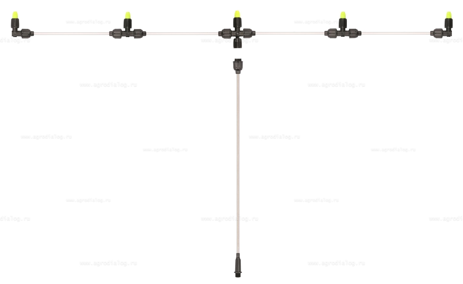 Распылительная горизонтальная штанга без рукоятки Marolex R05MR60SK с пятью круглыми форсунками с регулируемым углом струи поможет вам быстро обработать значительную территорию грядок с овощными культурами, цветник или рассадник. Длина штанги: 60 см. Ширина штанги: 120 см. Диапазон распыления 150 см.