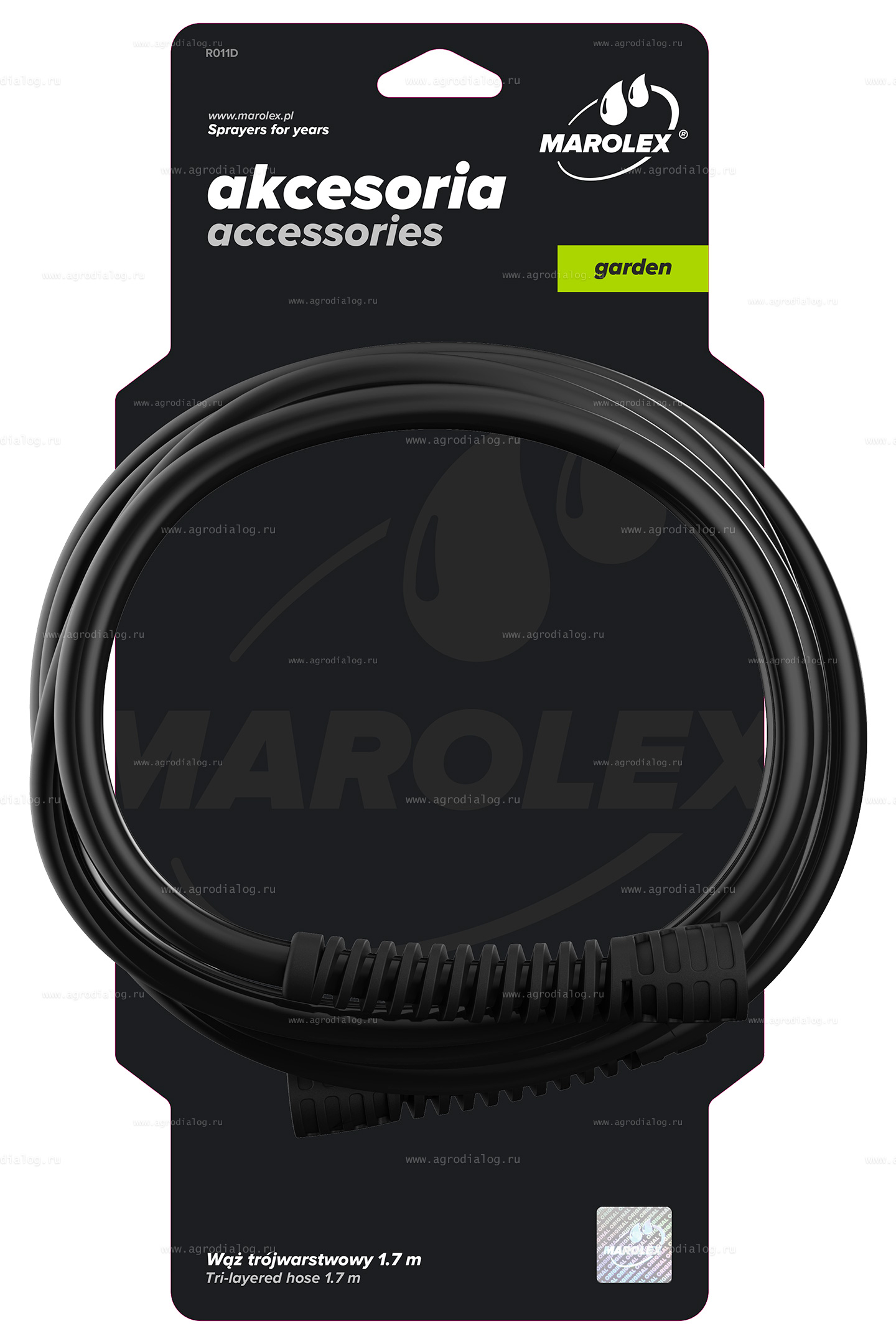 Высокопрочный трехслойный шланг Marolex R011D предназначенный для средств защиты растений и легких химических веществ. В комплекте со шлангом имеются гайки с пружиной, полностью исключающие возможность загибания шланга на рукоятке и бачке. Длина шланга: 170 см.