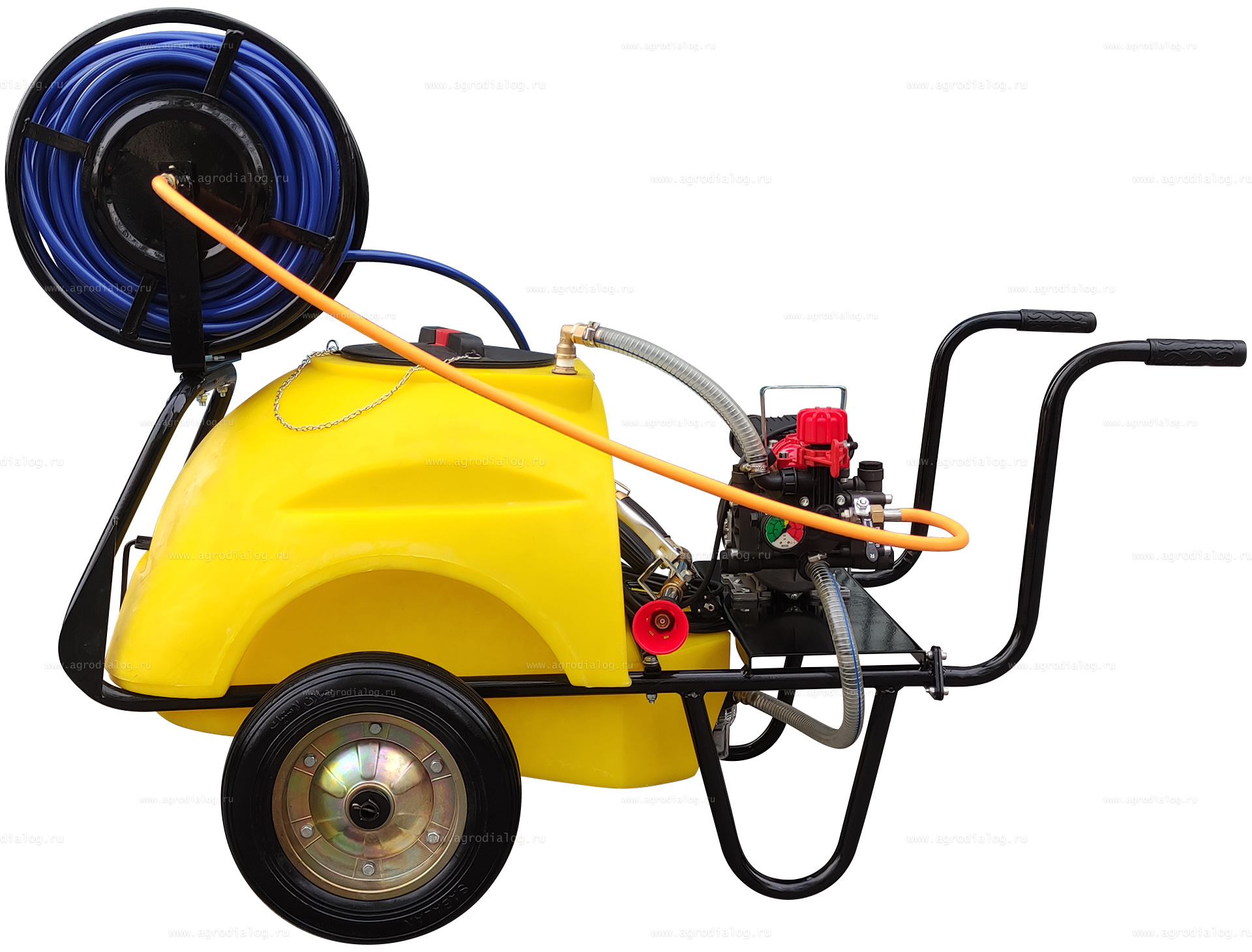 - Электрический опрыскиватель на колесах Annovi Reverberi 120 оснащен 50 метровым шлангом высокого давления на катушке.