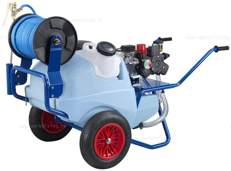- Электрический опрыскиватель на колесах Annovi Reverberi 130 AR252 оснащен 10 метровым шлангом высокого давления.