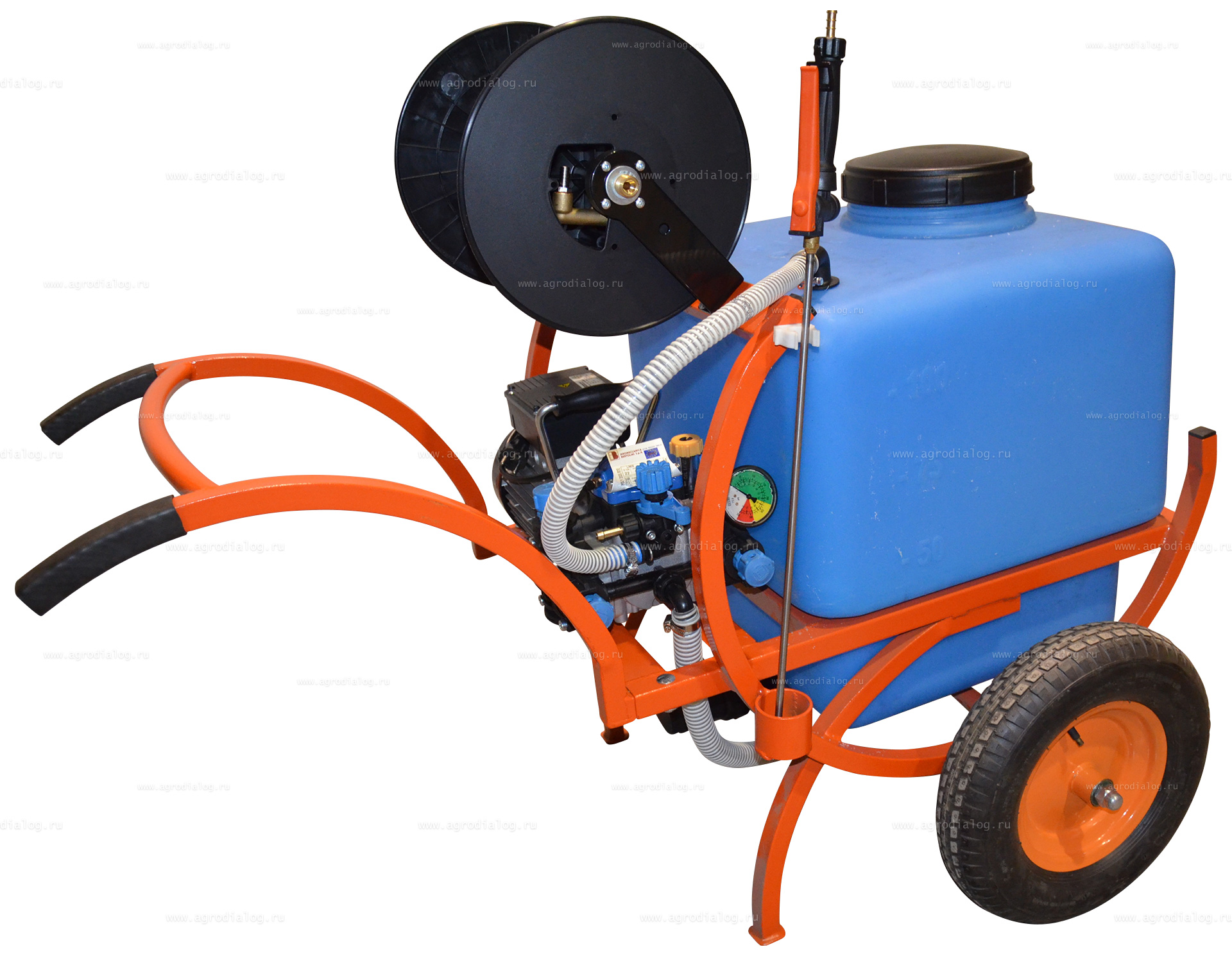 - Электрический опрыскиватель на колесах Bertolini 120 оснащен 50 метровым шлангом высокого давления на катушке.