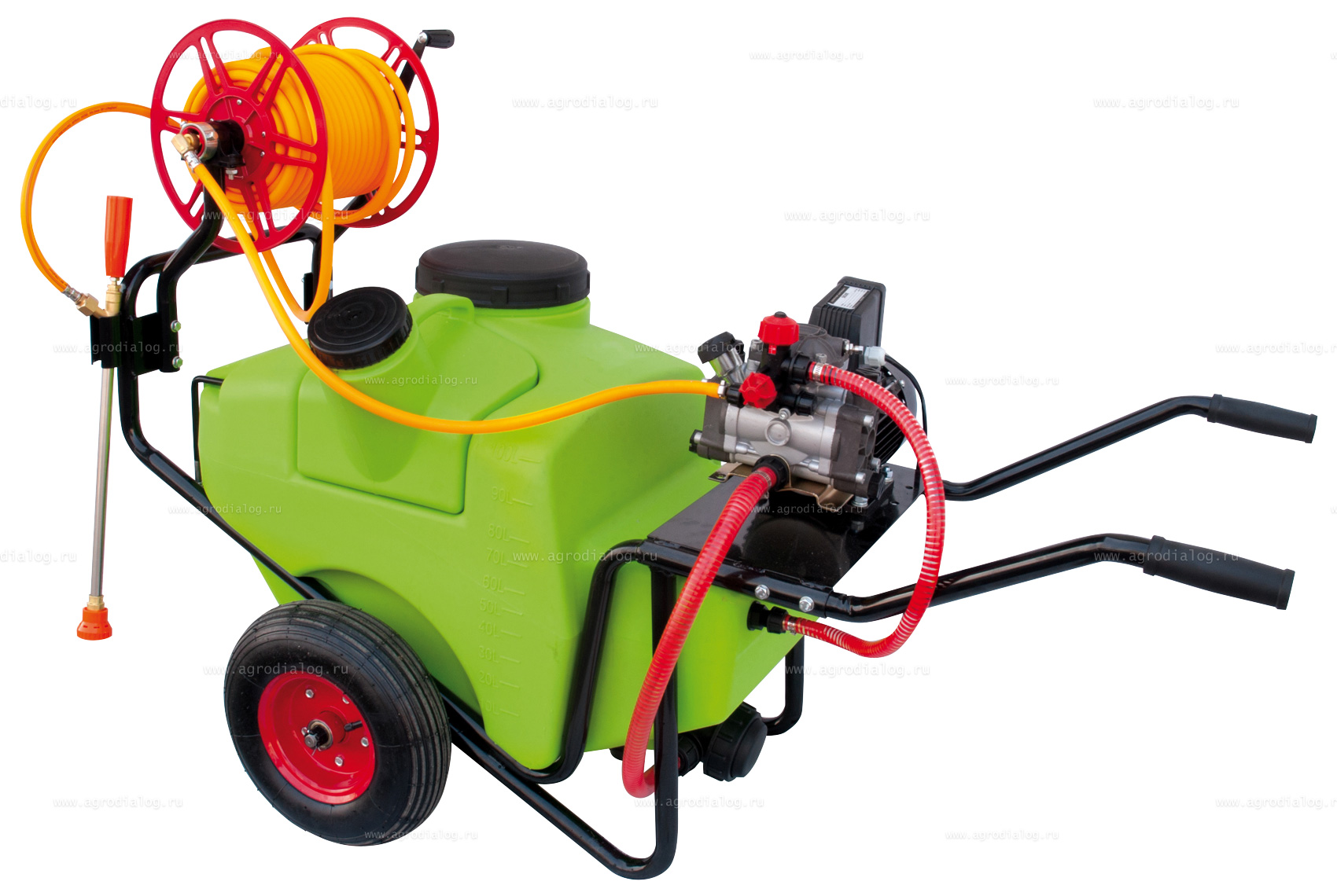- Электрический опрыскиватель на колесах Farmer SB 100E оснащен 30 метровым шлангом высокого давления на катушке.
