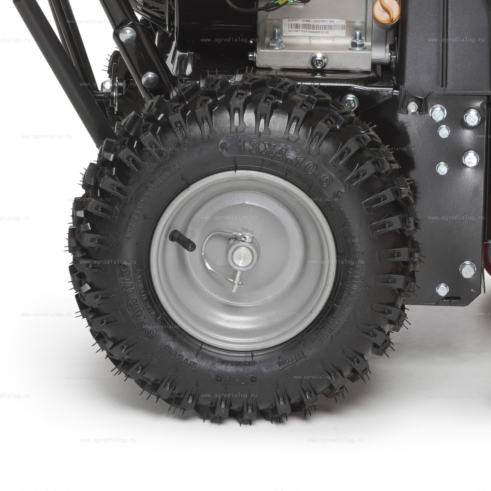 - Широкие пневматические колеса со специальным протектором резины Snow Hog, облегчают проходимость и маневрирование на заснеженной поверхности.