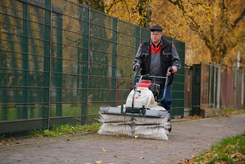 Продуманная конструкция машины позволяет производить очистку вблизи бордюров, стен зданий и строений. За счёт своих малых размеров может использоваться в местах, недоступных для работы крупногабаритной уборочной техники.