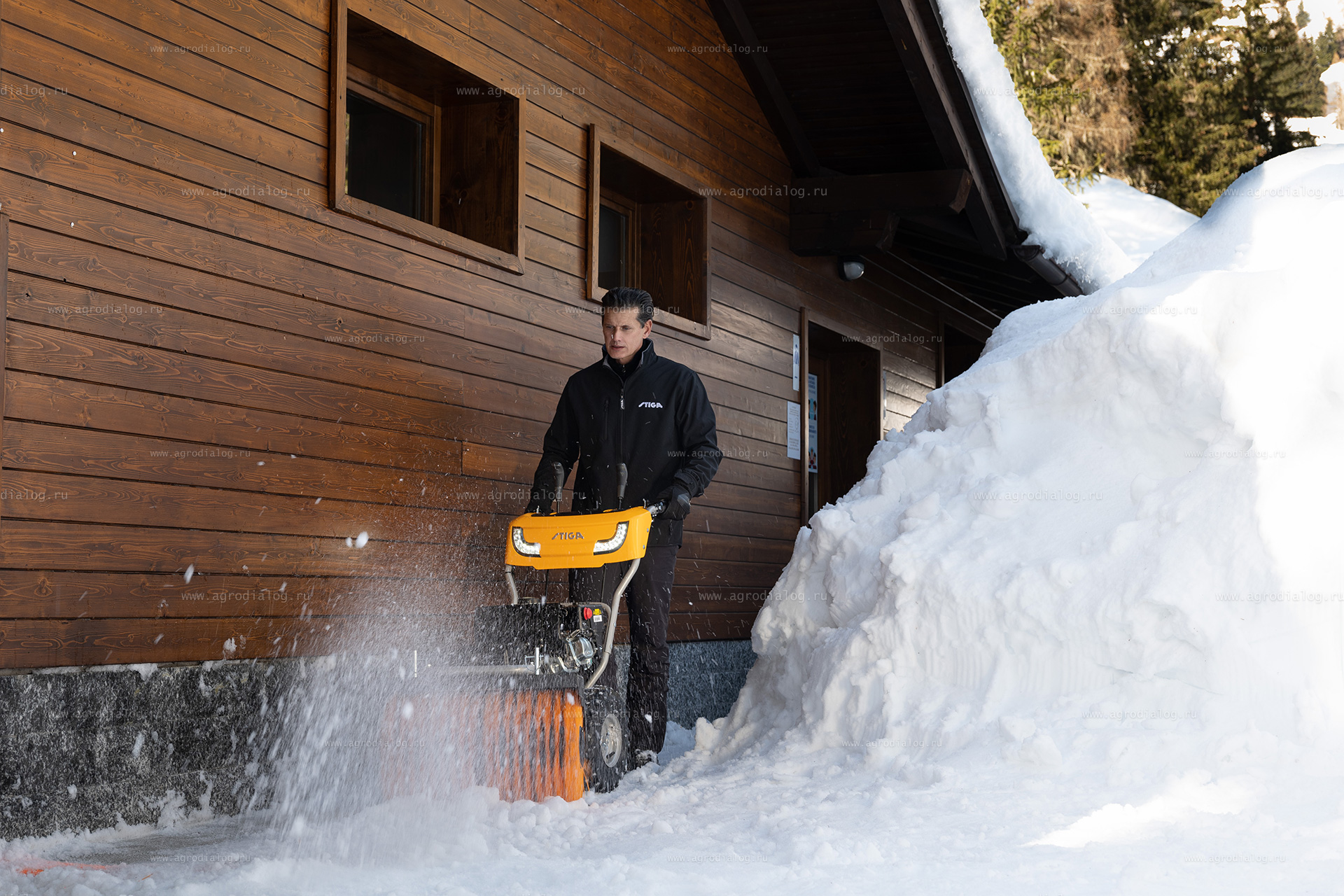 - Широкие пневматические колеса со специальным протектором резины Snow Hog, облегчают проходимость и маневрирование на заснеженной поверхности.