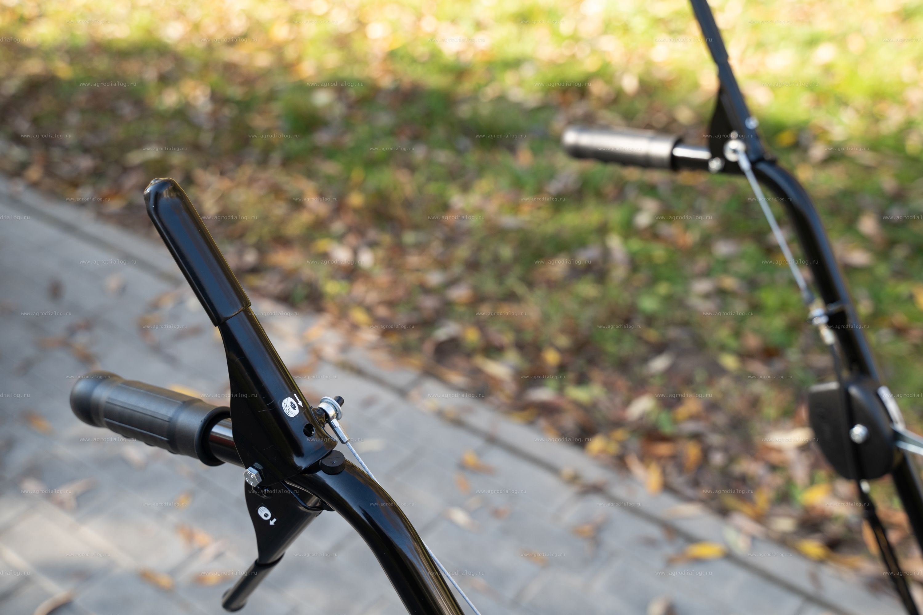 - Рукоятка управления обеспечивает минимальное напряжение рук в ходе работы, возможность регулировки по высоте позволяет подобрать наиболее удобное положение людям разного роста. Складывается для удобного хранения и транспортировки.