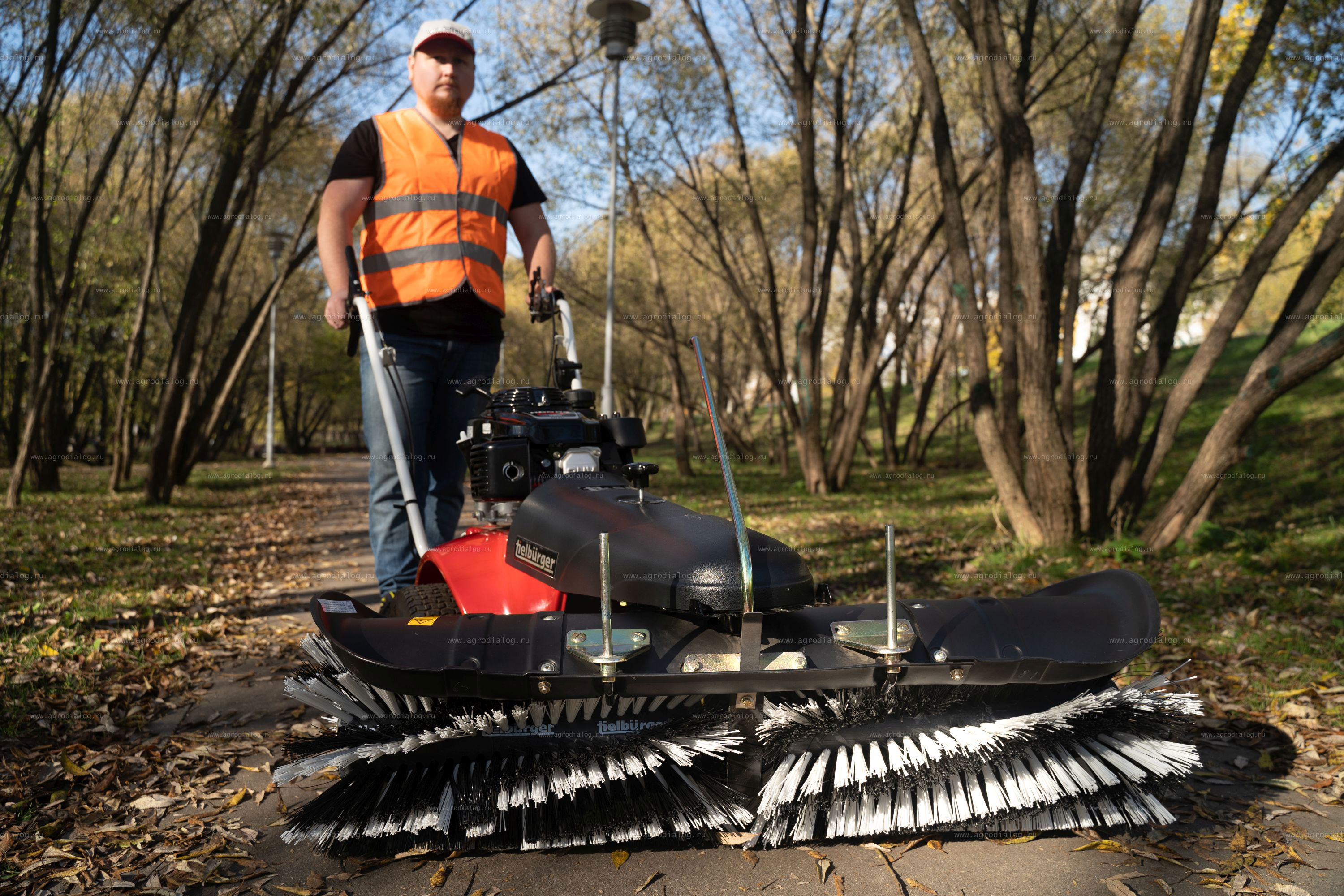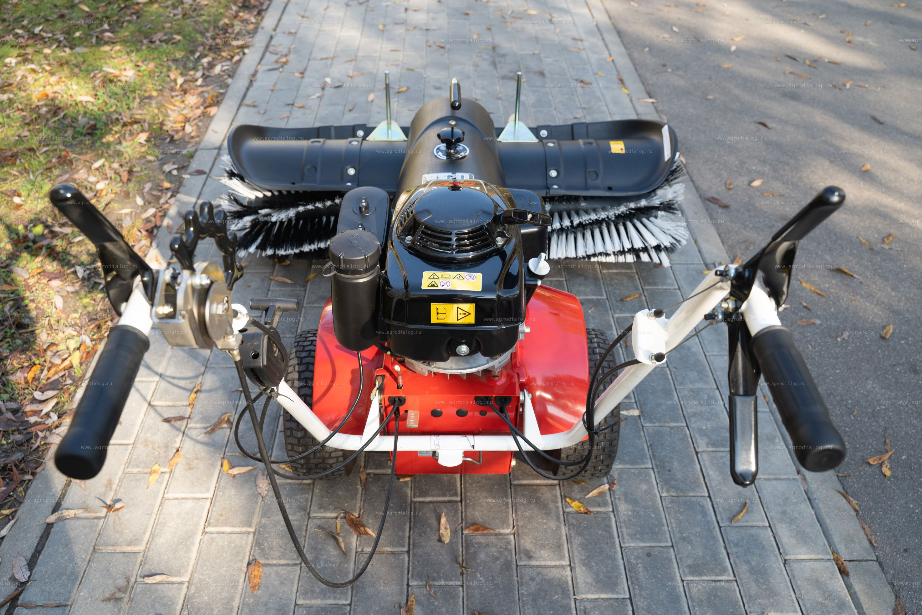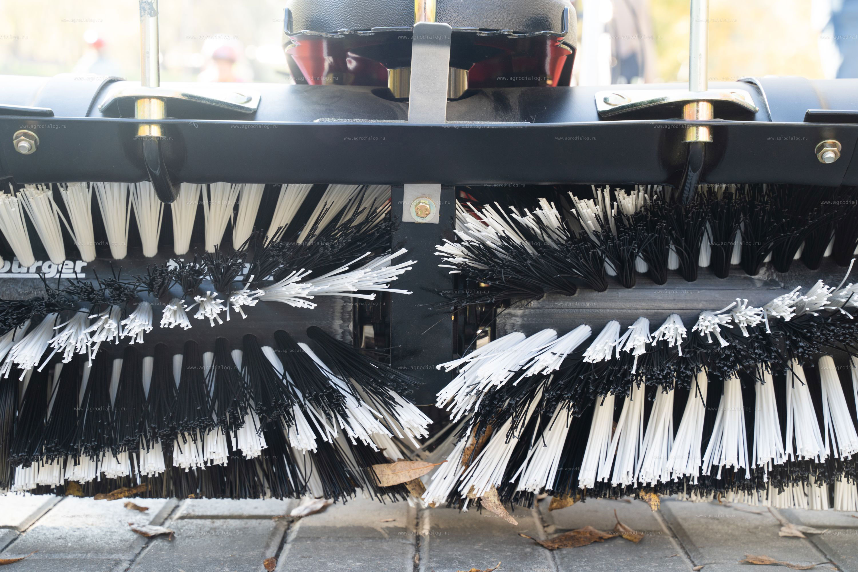 Для работы весной, летом и осенью можно использовать вместительный контейнер для сбора мусора. В зимний период установить нож-отвал, который будет сдвигать верхний слой снега, в то время как щетка будет счищать наледь.