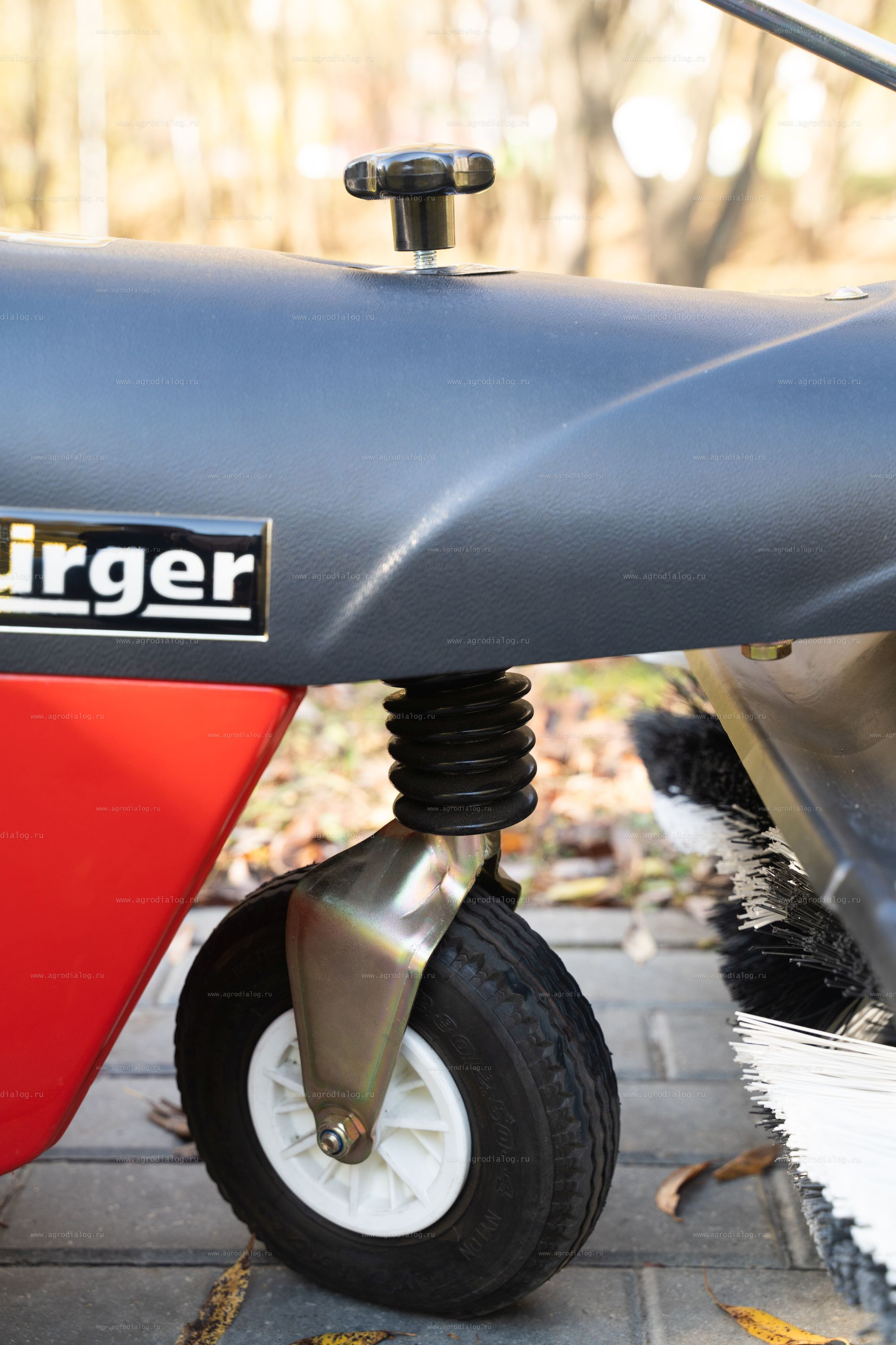 - Удобная регулировка усилия прижатия щетки к дорожной поверхности с помощью барашкового винта, установленного на корпусе машины для более качественной очистки.