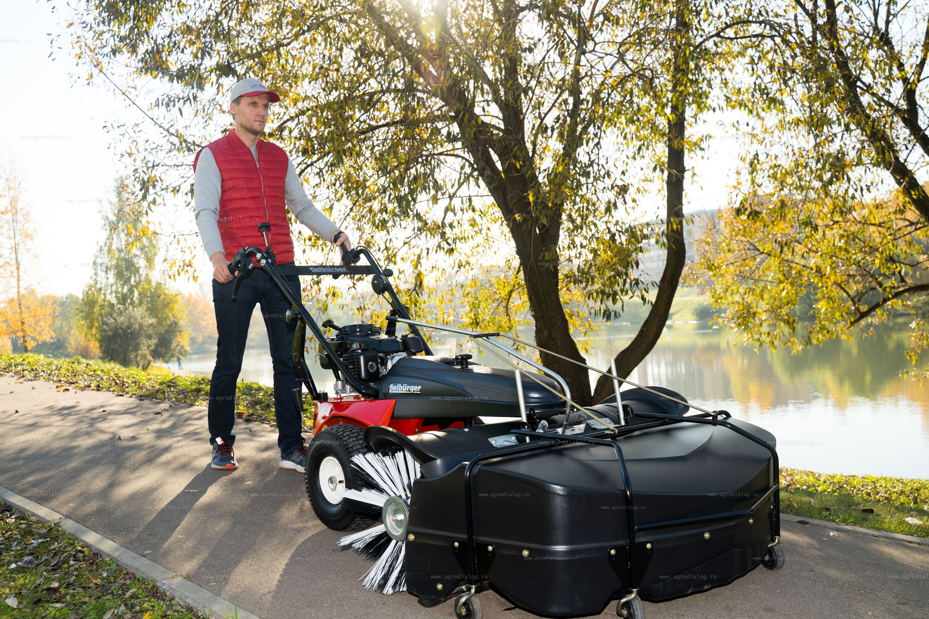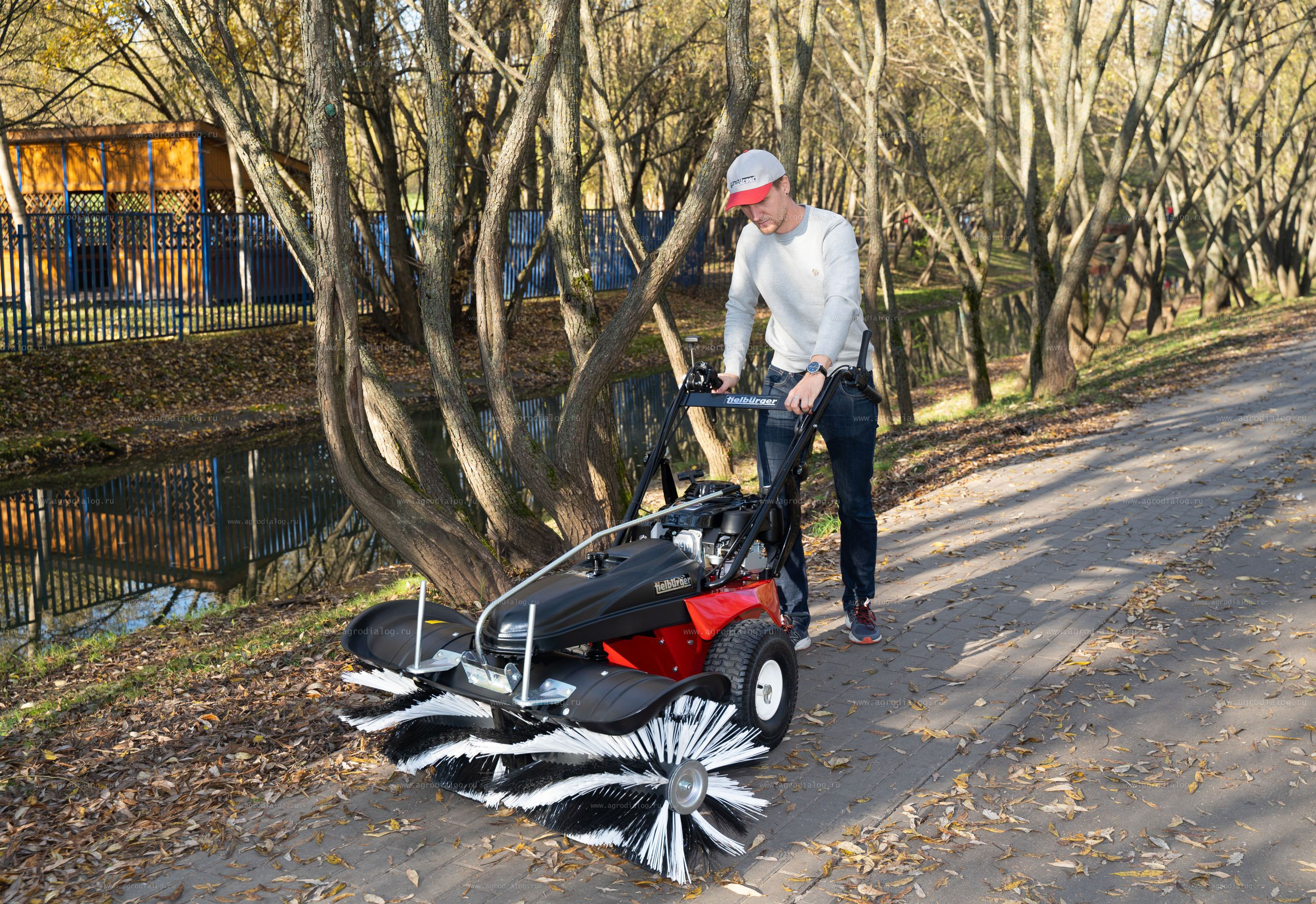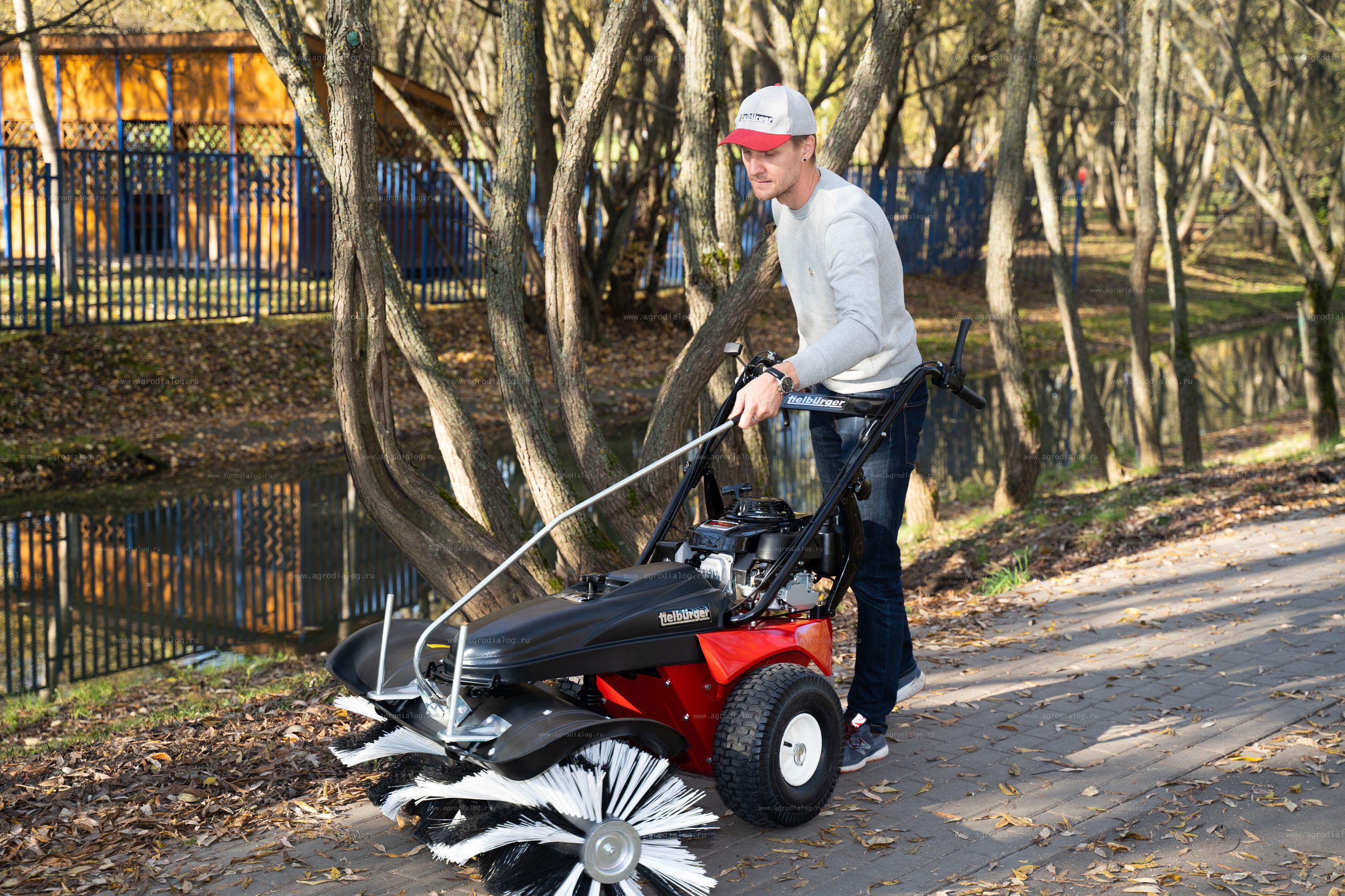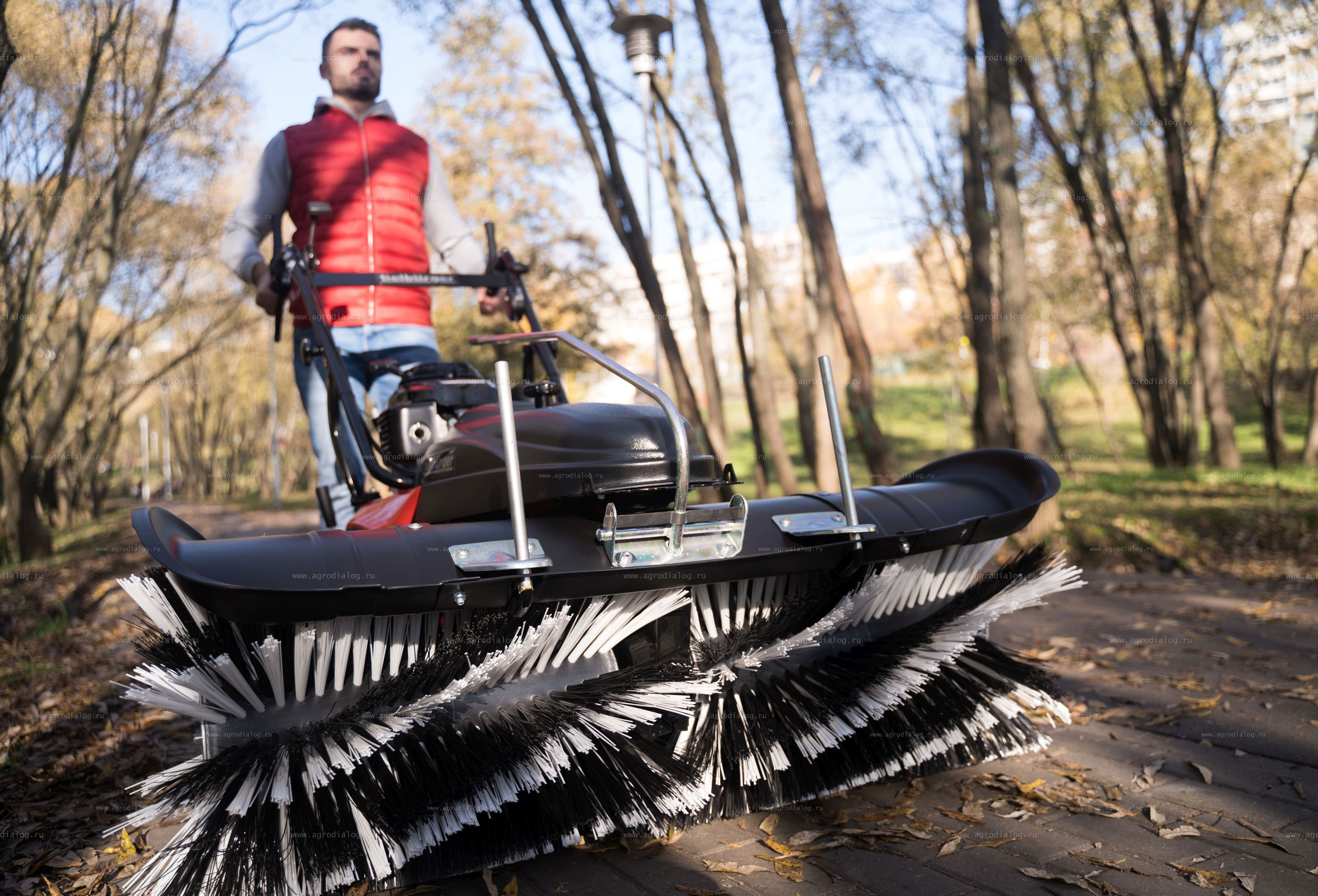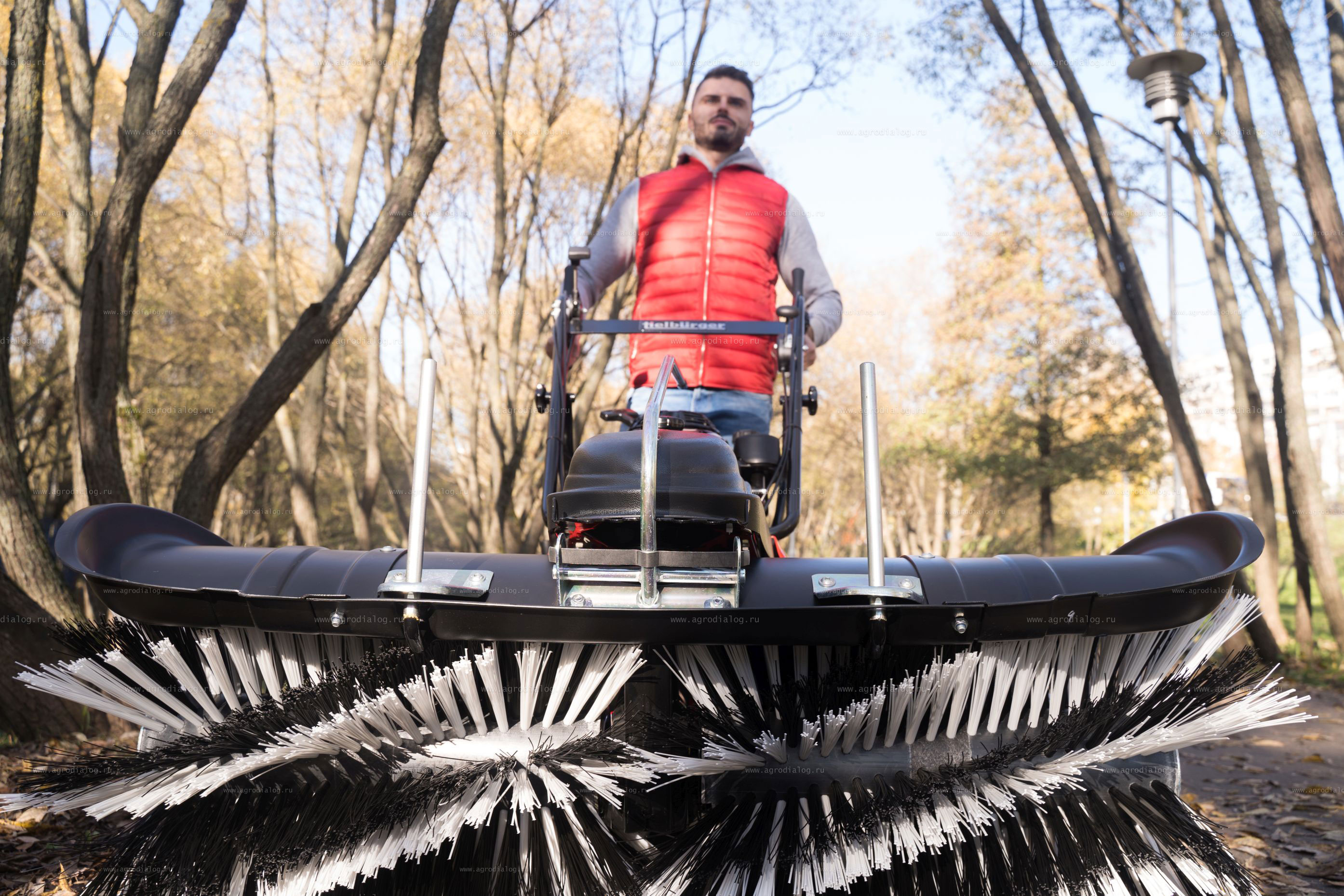 Для работы весной, летом и осенью можно использовать вместительный контейнер для сбора мусора. В зимний период установить нож-отвал, который будет сдвигать верхний слой снега, в то время как щетка будет счищать наледь.