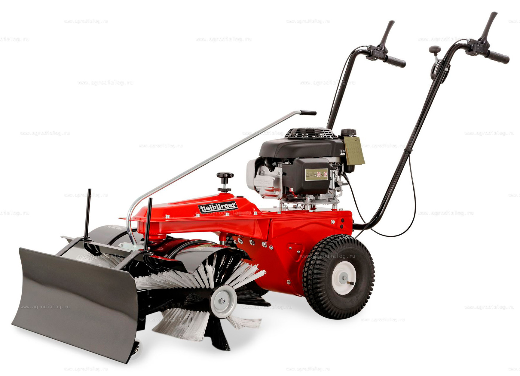 Отвал для снега легко устанавливается и позволяет одновременно чистить и подметать местность.