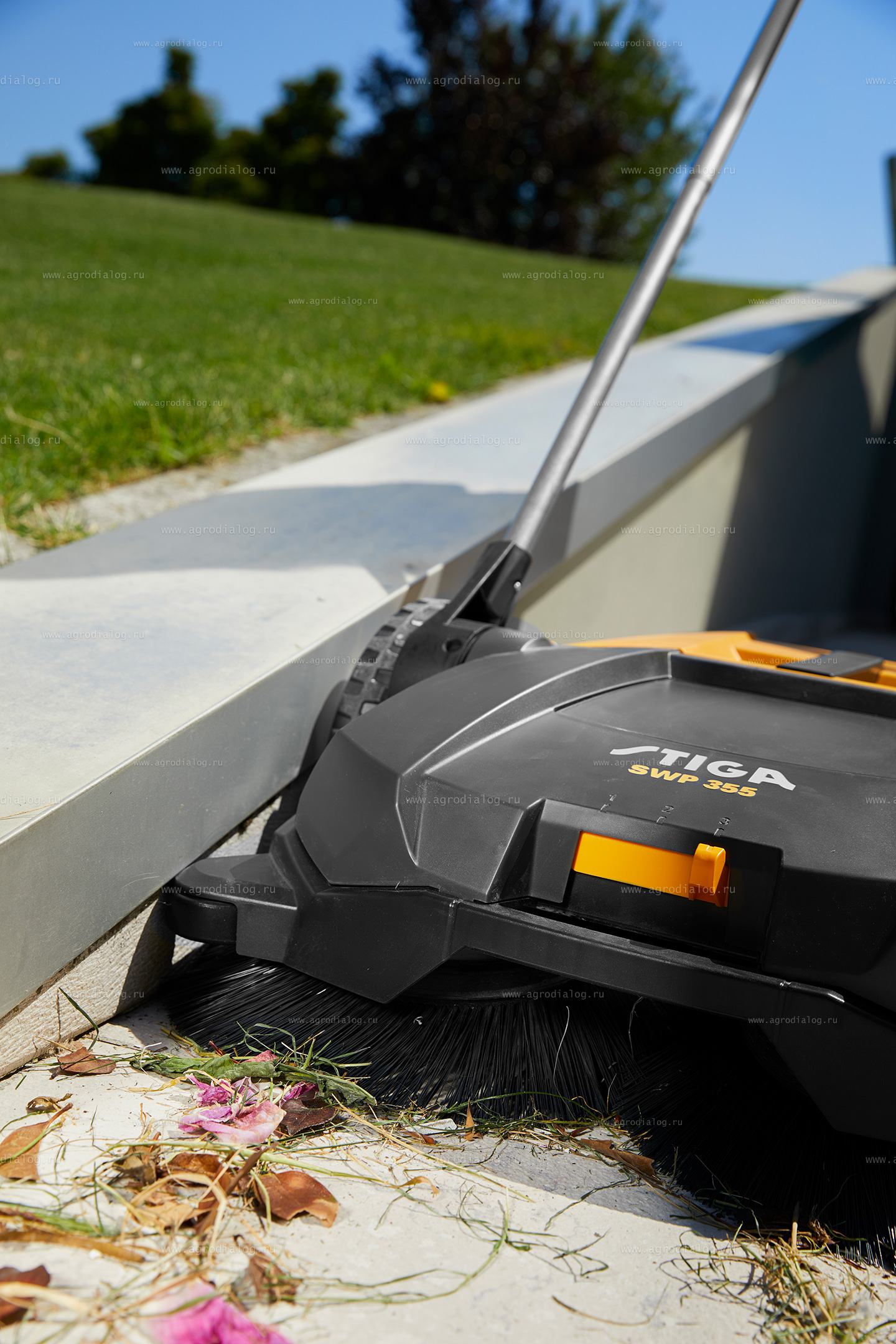 Механическая подметальная машина Stiga SWP 355 подходит для уборки твердых поверхностей в помещениях и для всесезонной уборки на улице. Успешно применяется как в частном хозяйстве для уборки дорожек, так и в коммунальном для удаления с парковок и тротуаров крупного и мелкого мусора.