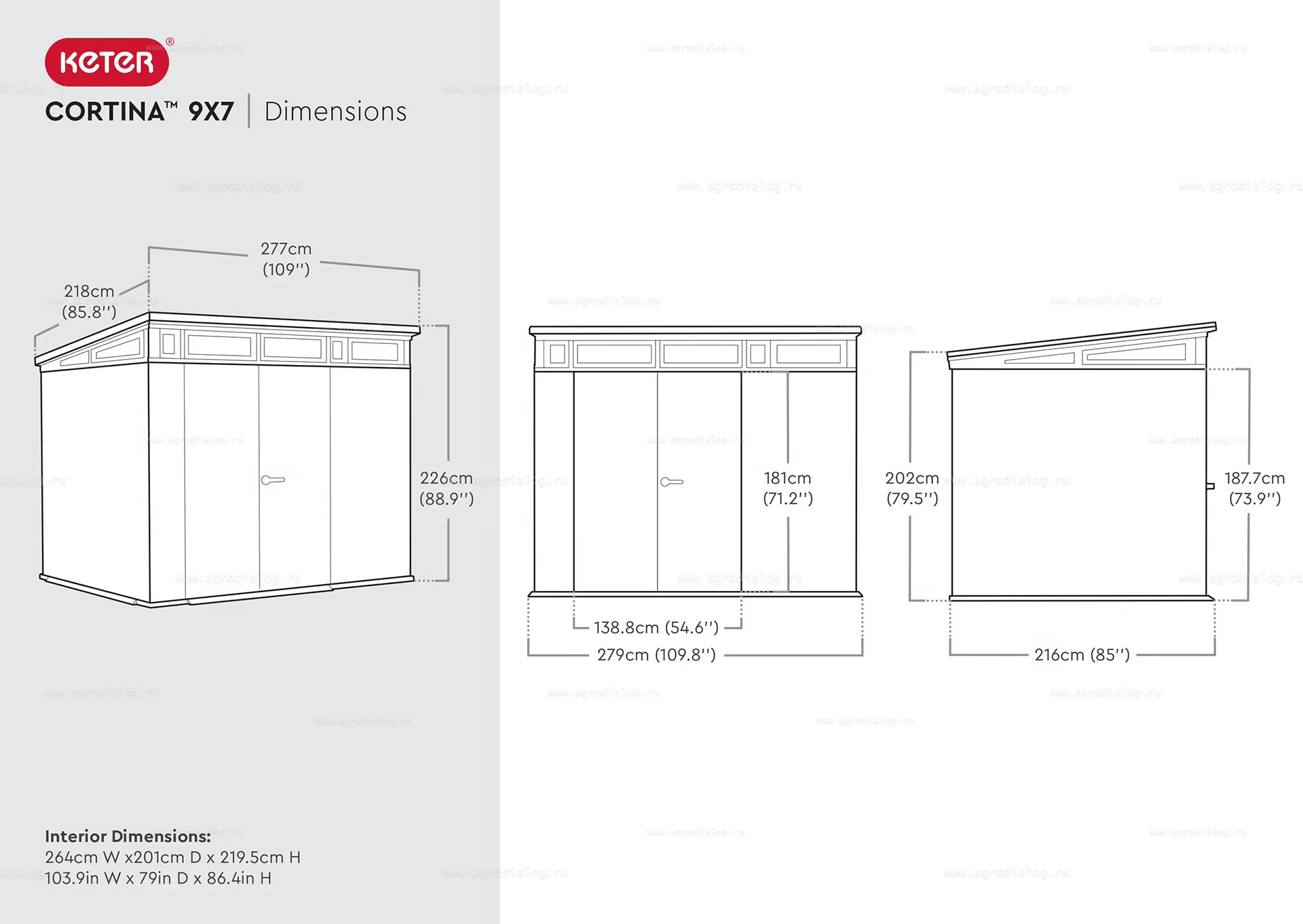 Древесно-пластиковый композитный сарай Keter Cortina 9x7 Graphite применение:
