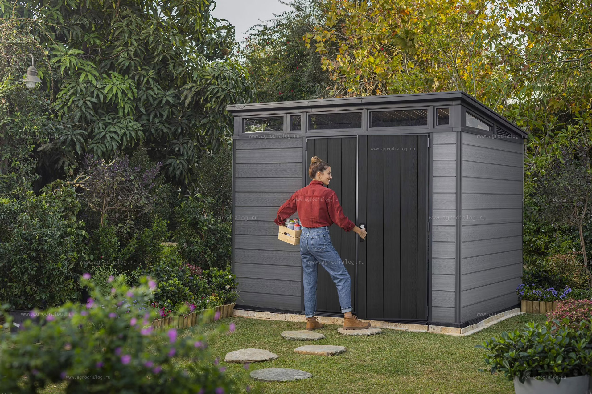 Новинка на Российском рынке: древесно-пластиковый композитный сарай Keter Cortina 9x7 Graphite для загородного дома и участка! Эстетичное решение без грязи и без забот.