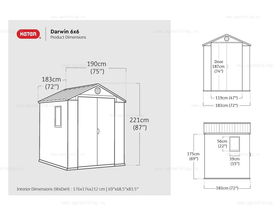 - Древесно-пластиковый композитный сарай Keter Darwin 6x6 Grey поставляется со всеми необходимыми деталями. Все элементы спроектированы так, чтобы их можно было легко собрать без головной боли и путаницы.