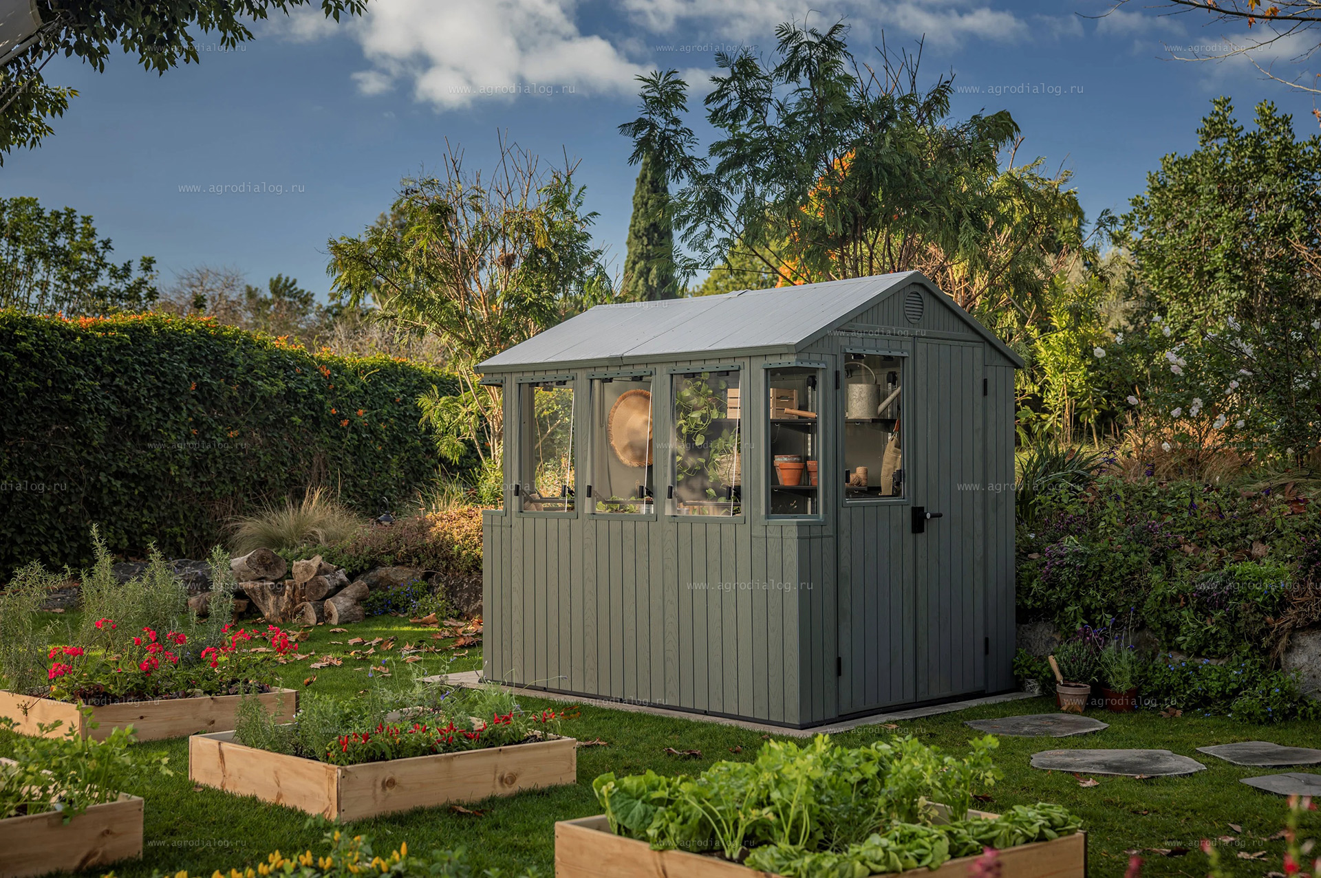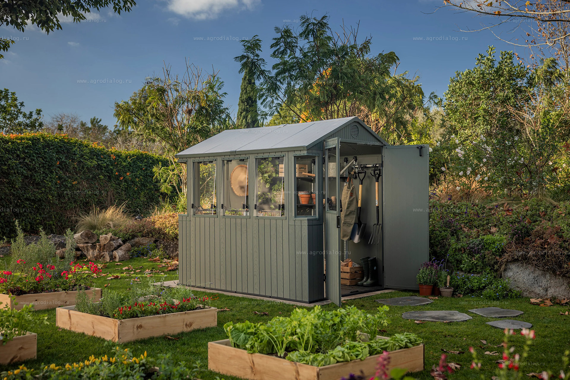 Новинка на Российском рынке: древесно-пластиковый композитный сарай Keter Darwin Potting 6x8 Green для загородного дома и участка! Эстетичное решение без грязи и забот.
