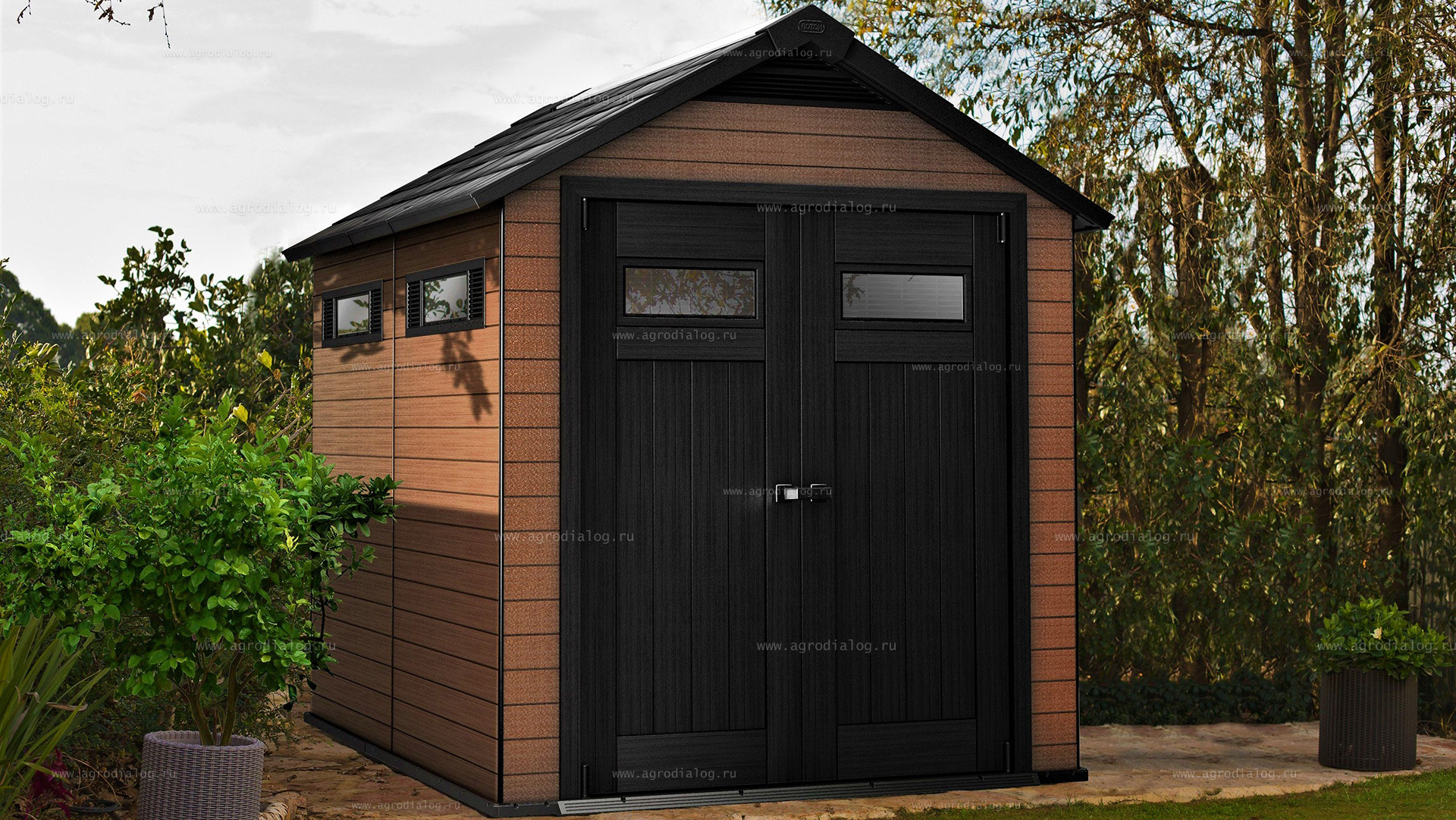 Новинка на Российском рынке: древесно-пластиковый композитный сарай Keter Fusion 759 Mahogany для загородного дома и участка! Эстетичное решение без грязи и без забот.