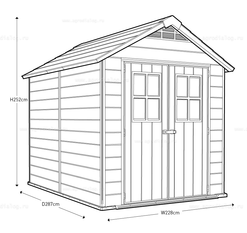 - Система пассивной вентиляции создает сухой микроклимат внутри сарая, отсутствует сырость и затхлость.