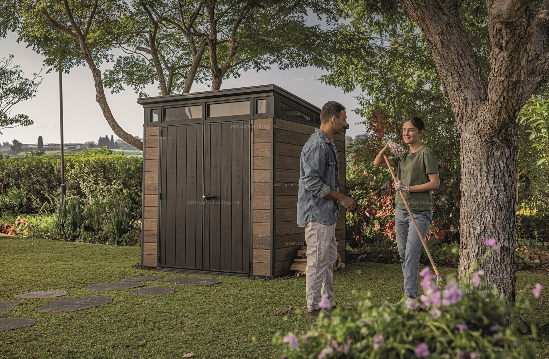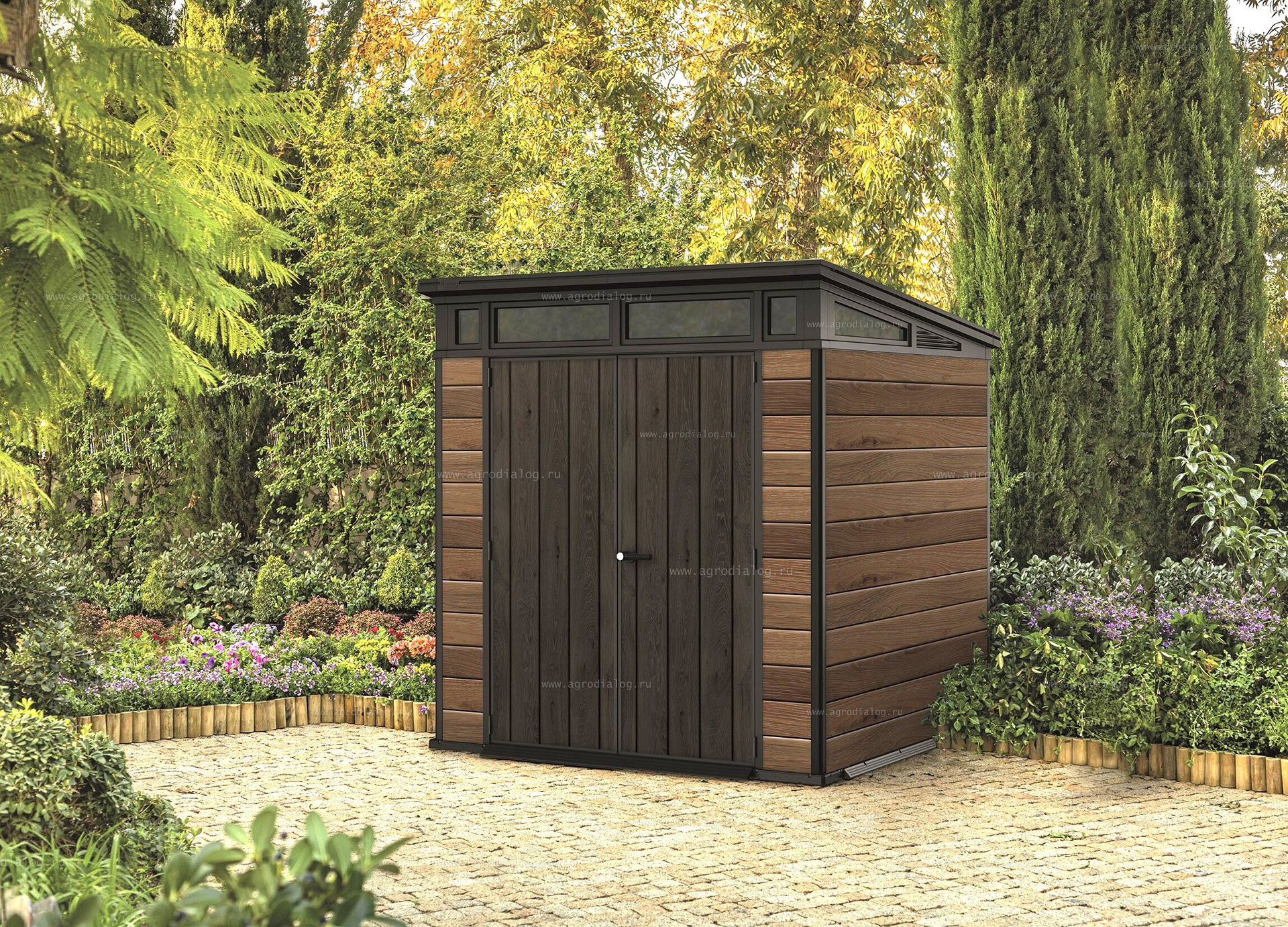 Древесно-пластиковый композитный сарай Keter Signature Pent 7x7 Walnut особенности: