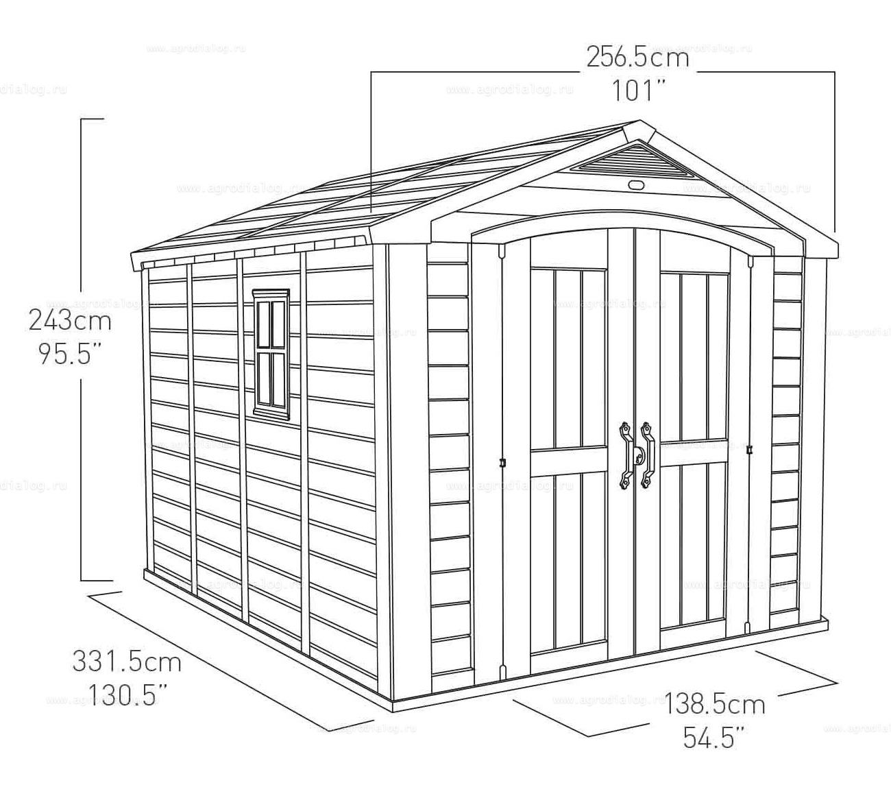 - Система пассивной вентиляции создает сухой микроклимат внутри сарая, отсутствует сырость и затхлость.
