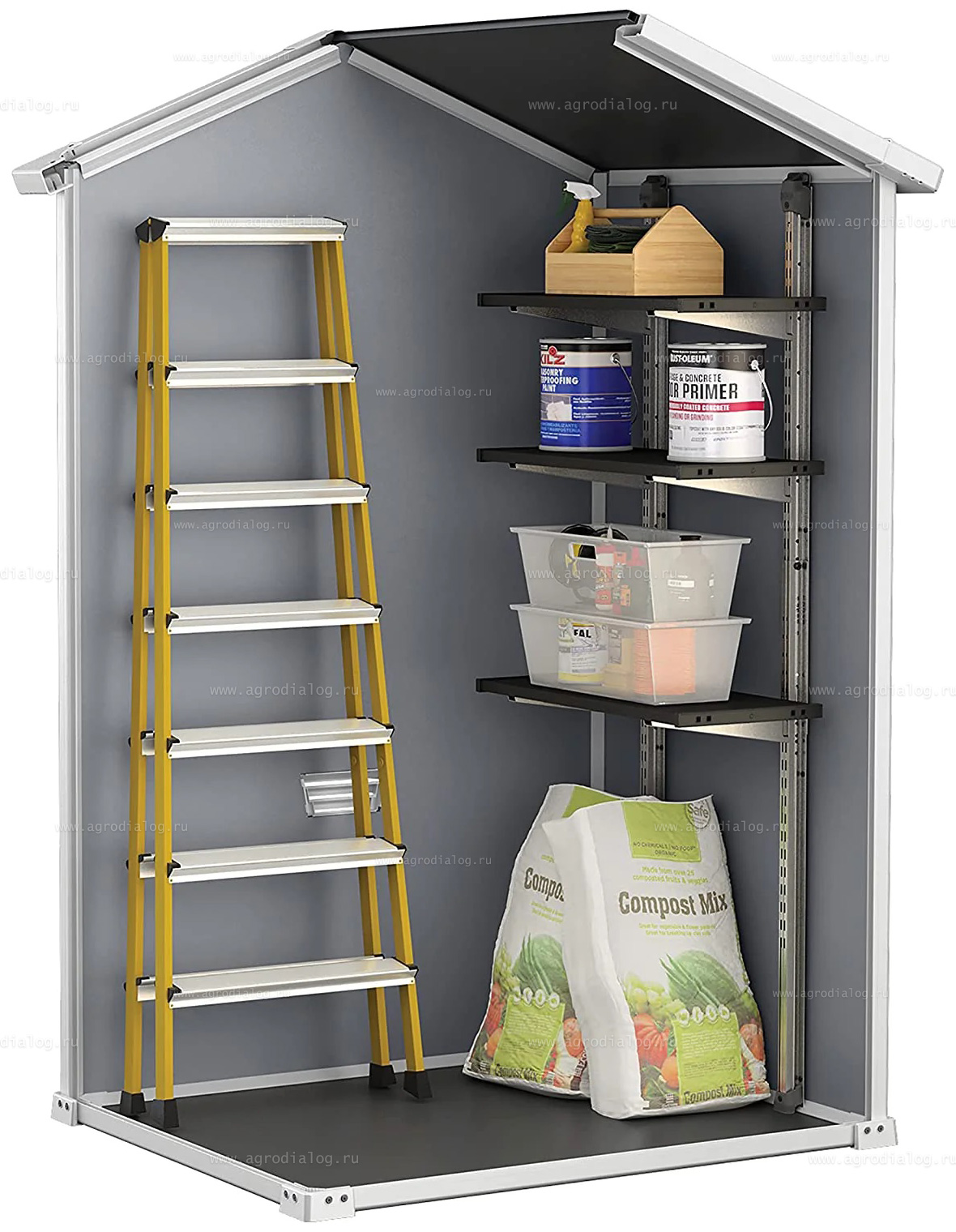 - Для хранения хозяйственного дачного инвентаря, инструментов, бытовой химии.