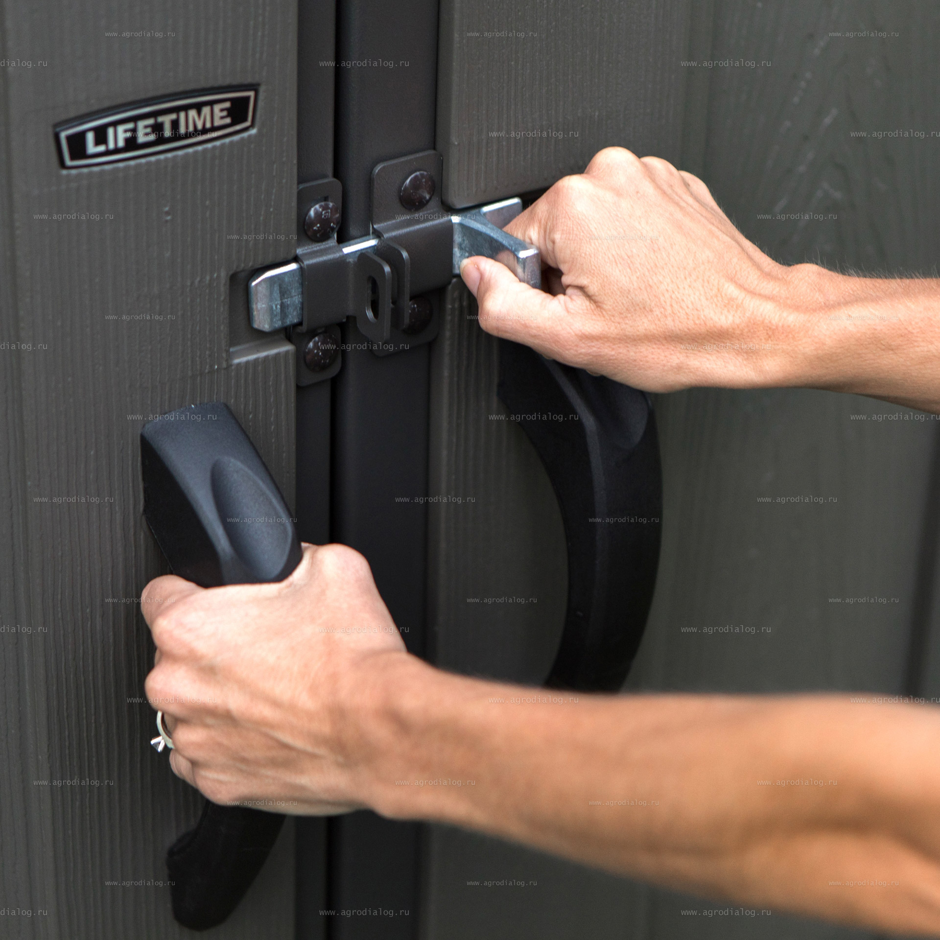 - Двери закрываются на задвижку, с петлями для навесного замка (замок не входит в комплект).