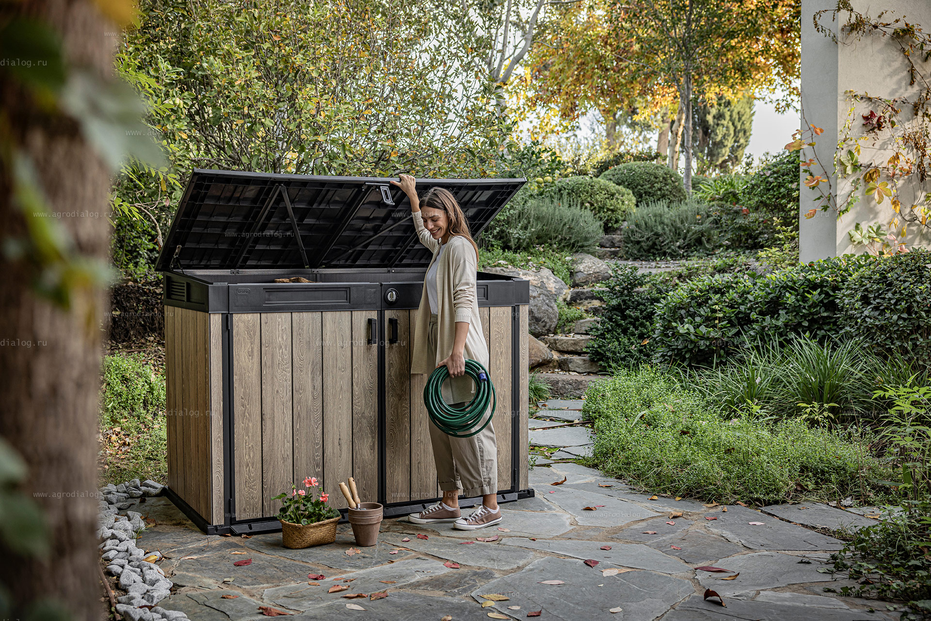 Новинка на Российском рынке: древесно-пластиковый композитный шкаф Keter Horizontal Shed 2020 L Ashwood для загородного дома и участка! Эстетичное решение без грязи и без забот.