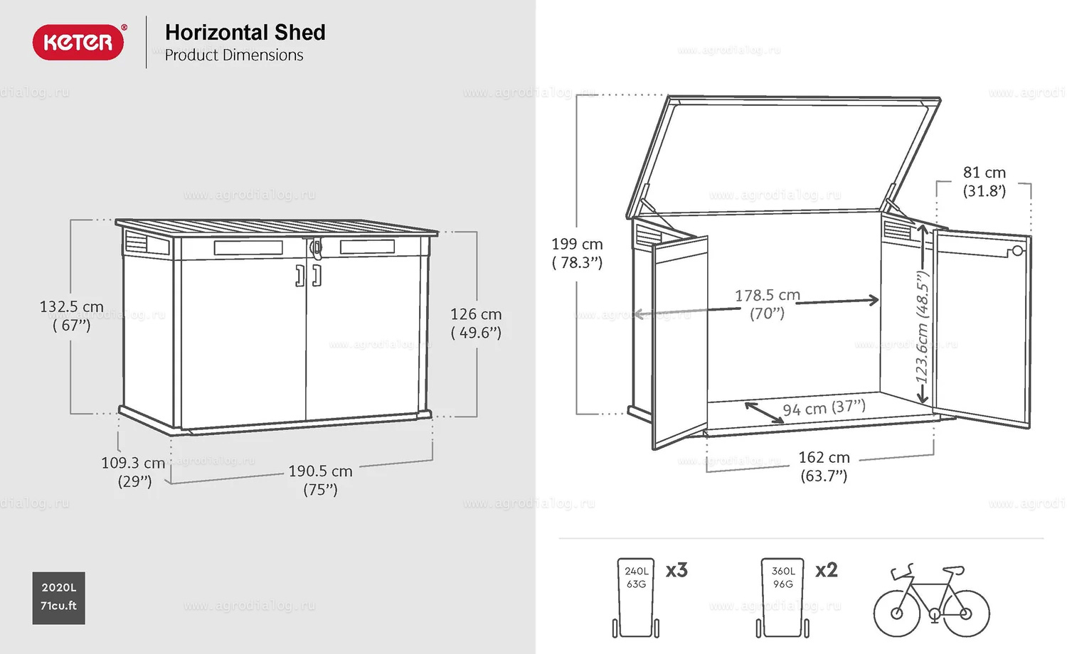Древесно-пластиковый композитный шкаф Keter Horizontal Shed 2020 L Venetian Grey особенности: