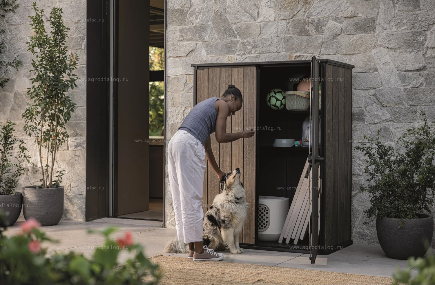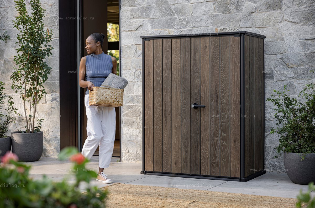 Древесно-пластиковый композитный садовый шкаф Keter Vertical Shed 1400 L Walnut применение: