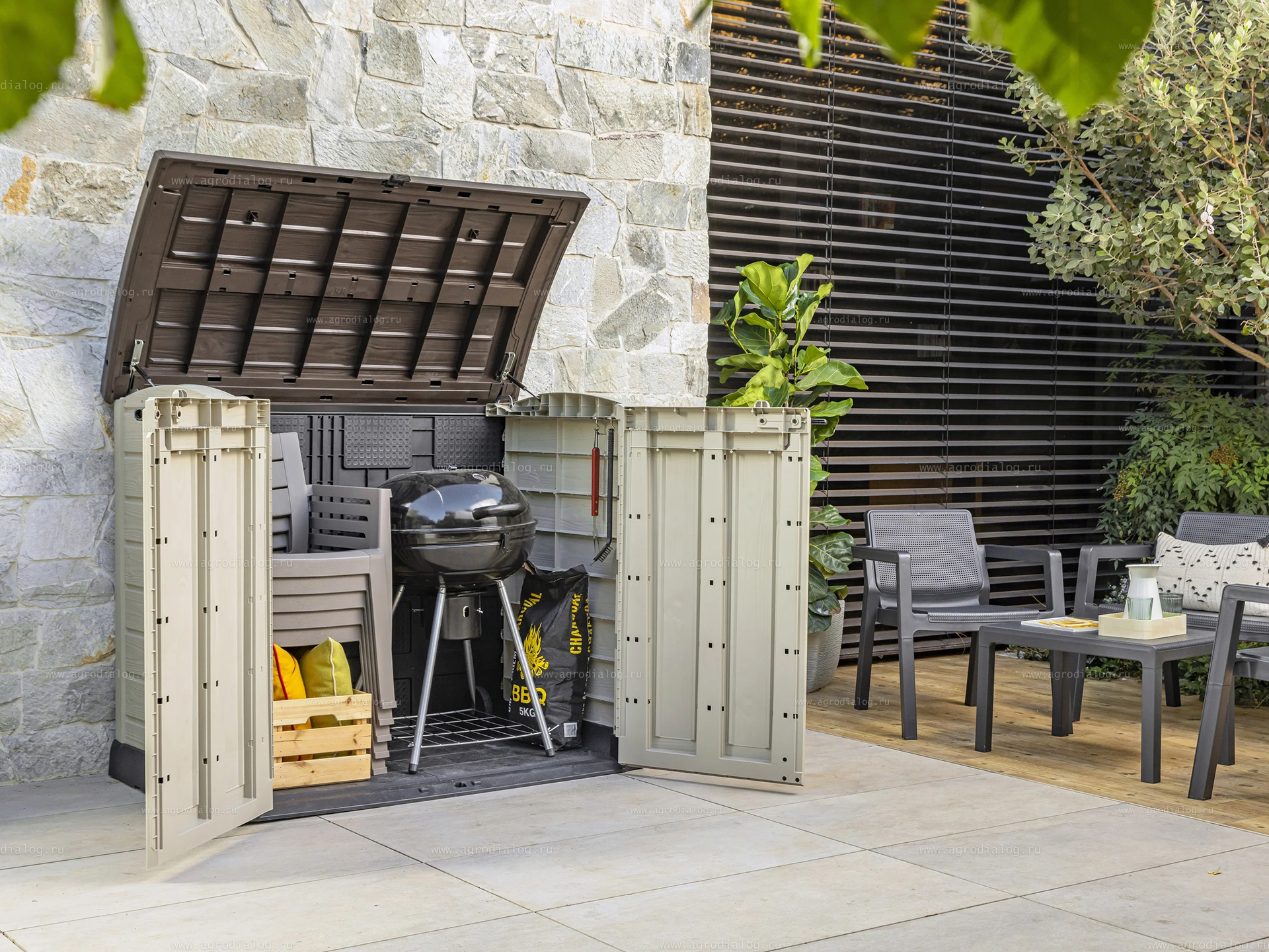 Пластиковый садовый шкаф Keter Store It Out Arc применение: